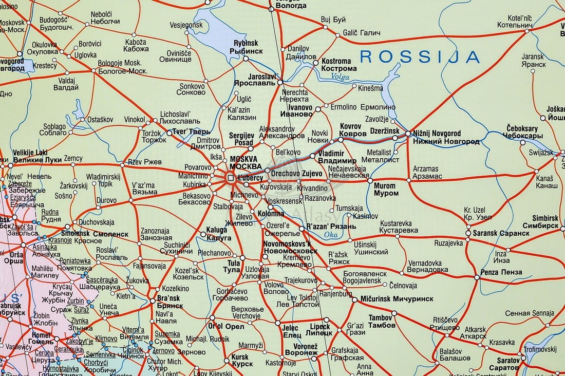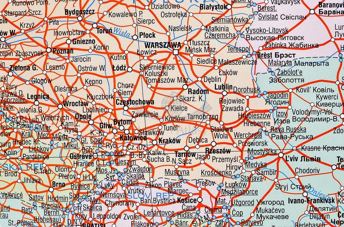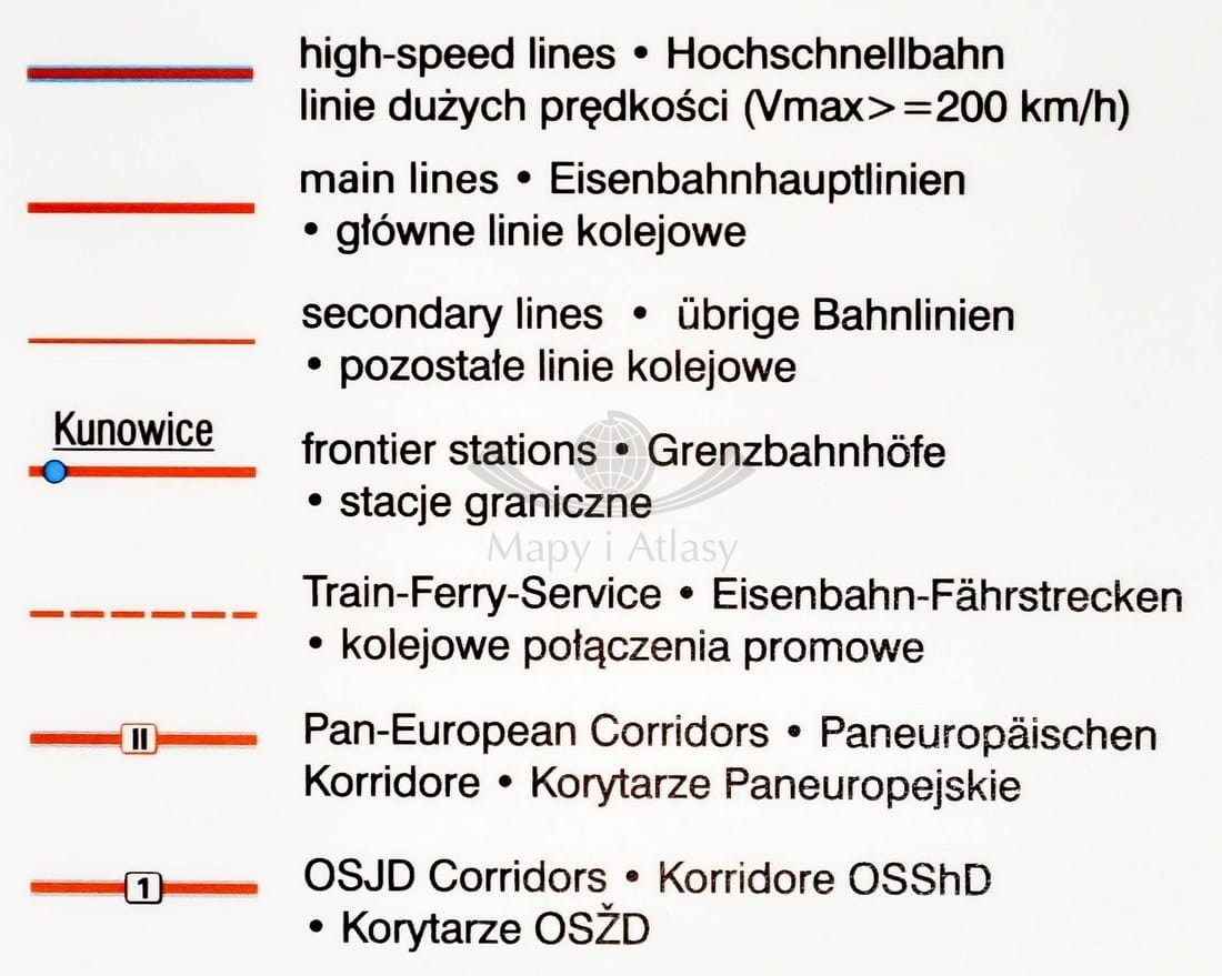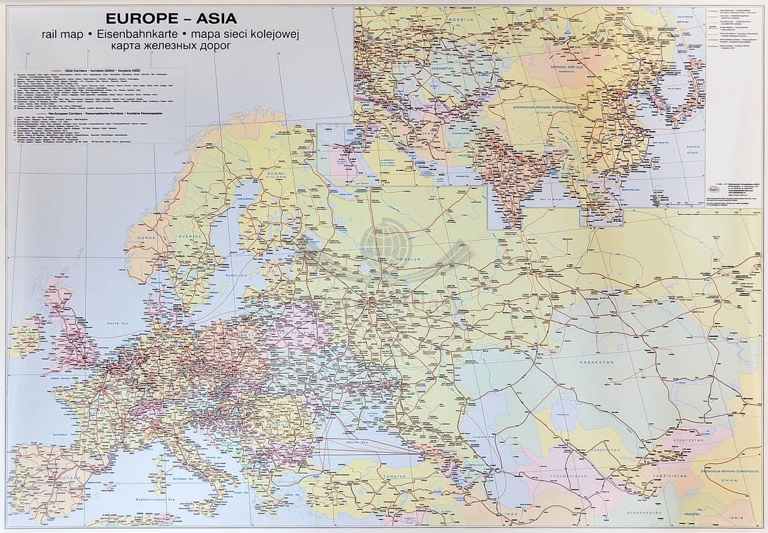 Europa i Azja. Mapa ścienna kolejowa 106x68 cm
