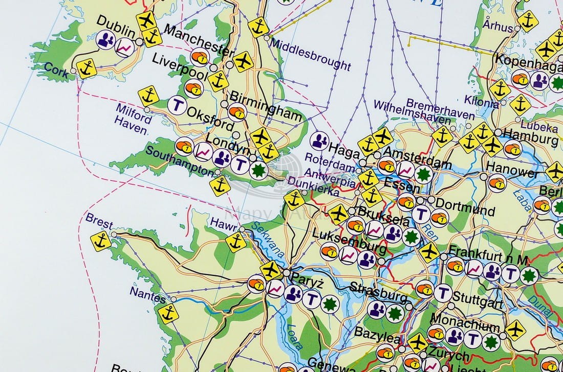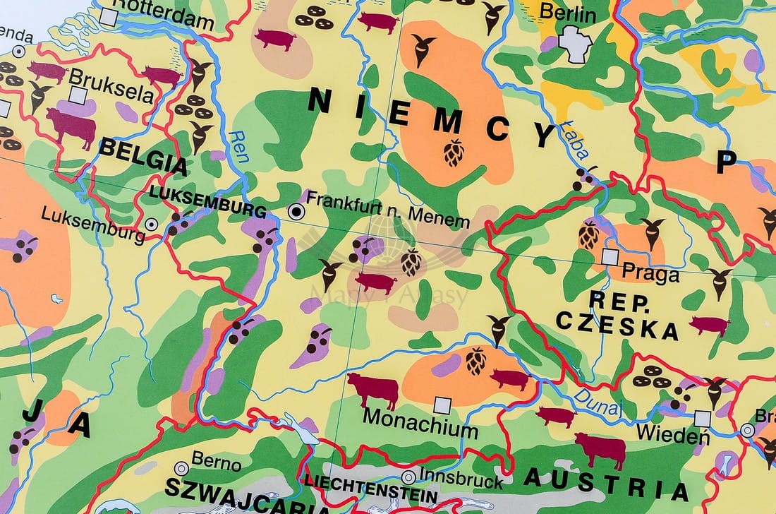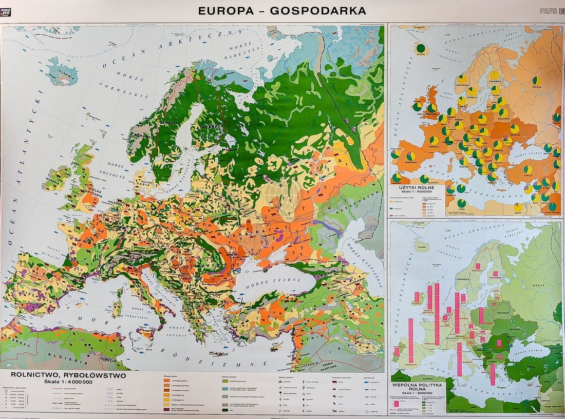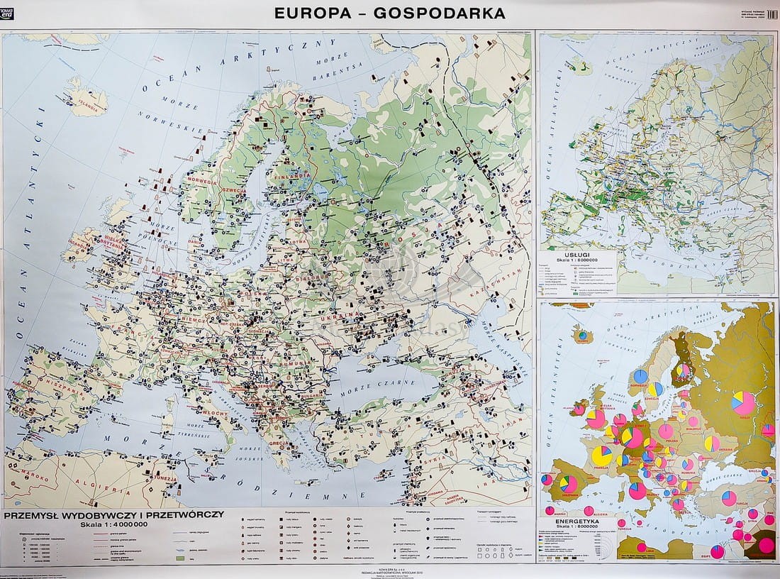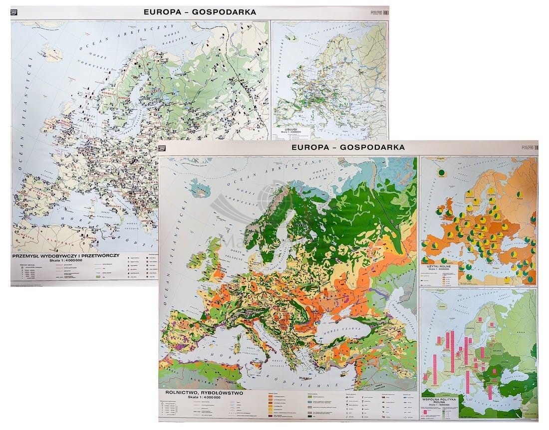 Europa - gospodarka: przemysł / rolnictwo. Dwustronna mapa ścienna