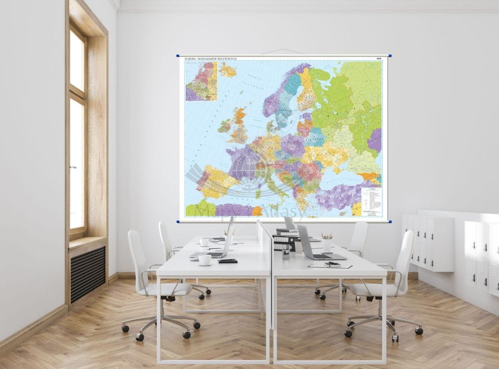 Europa 1:3 000 000. Mapa ścienna. Kody pocztowe. Język polski