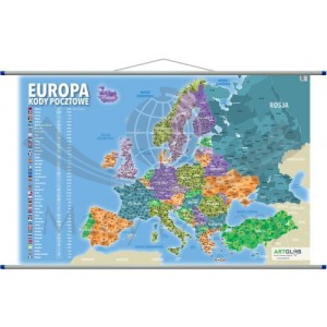 Mapa ścienna Europy z kodami pocztowymi. Zawiera: