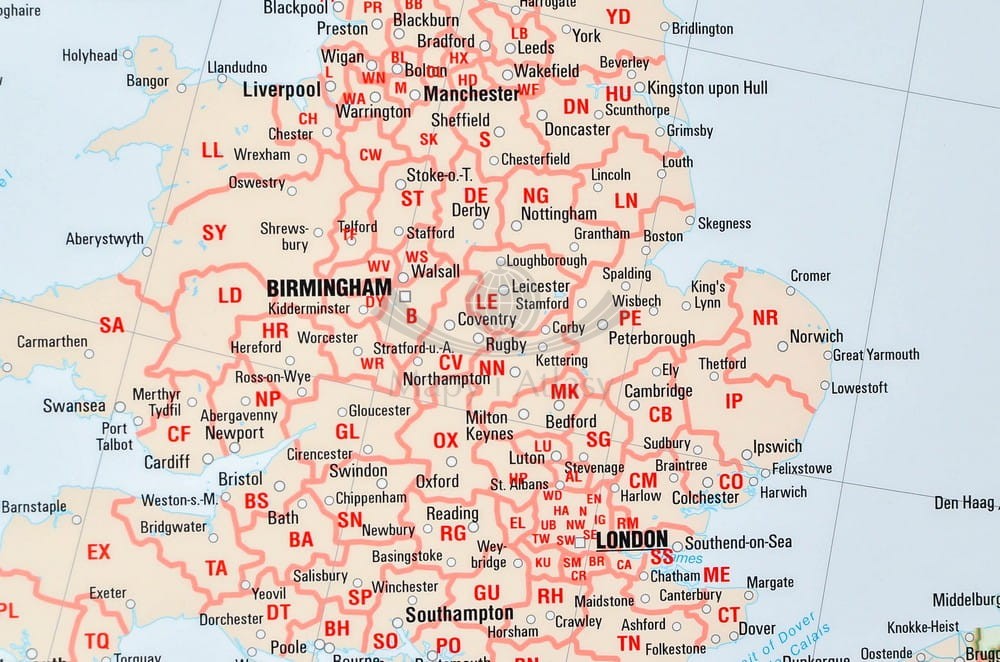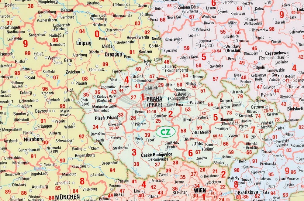 Ogromna, piękna mapa ścienna Europy z kodami pocztowymi w skali 1:2 500 000 wydawnictwa Bacher. Największy dostępny standardowy rozmiar.