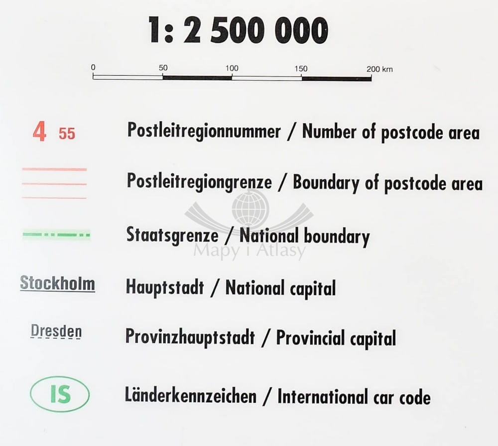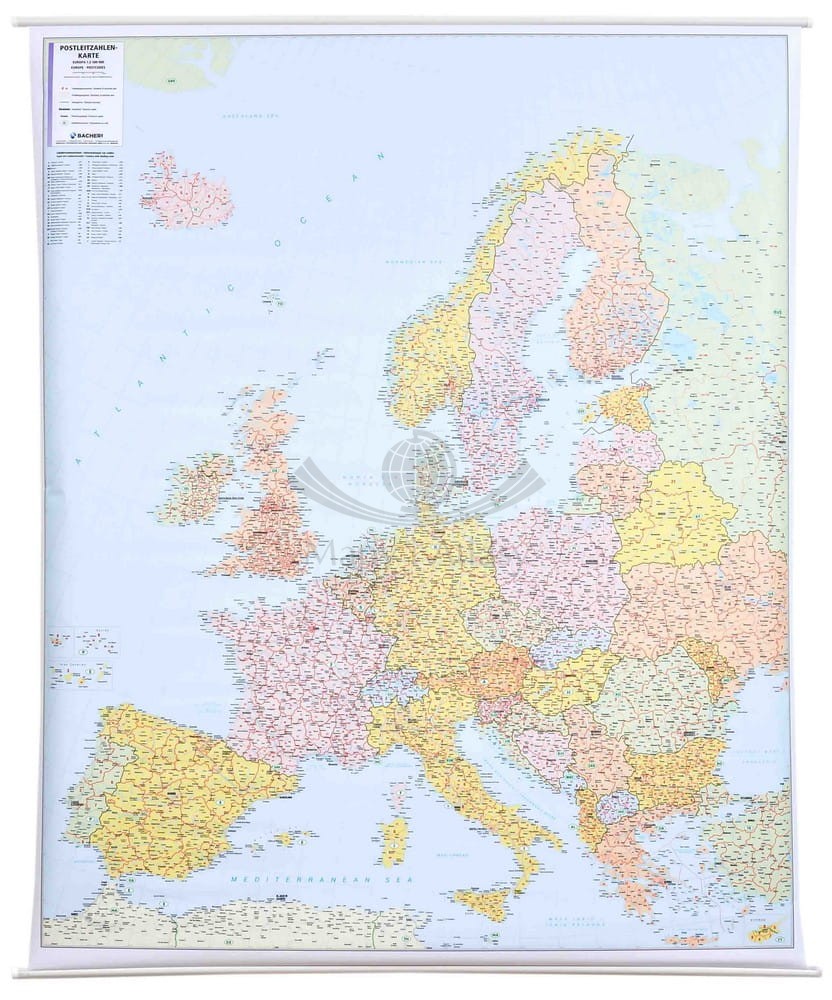 Europa 1:2 500 000. Mapa ścienna. Kody pocztowe. Bacher