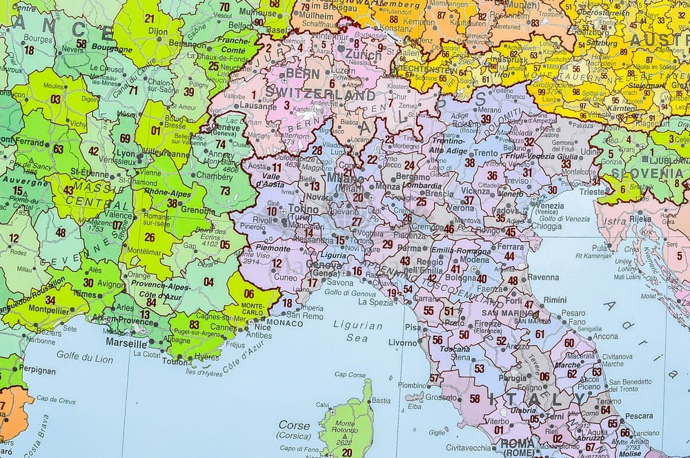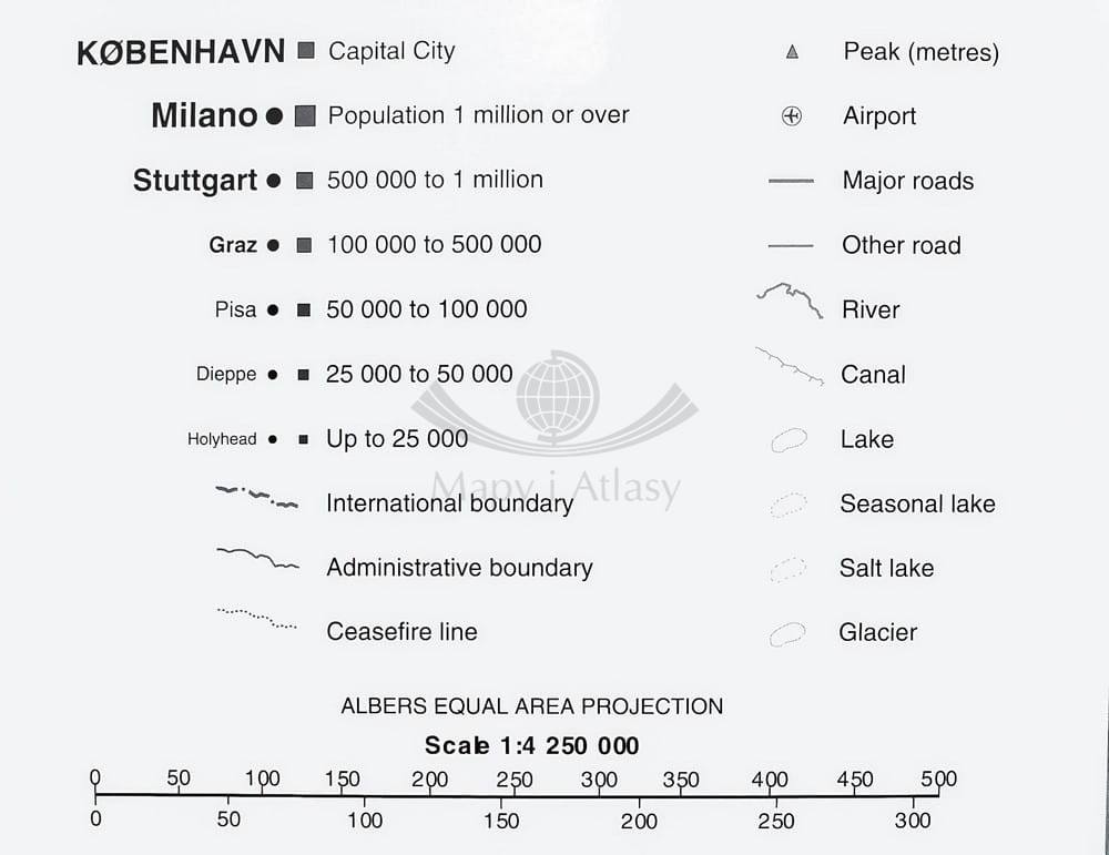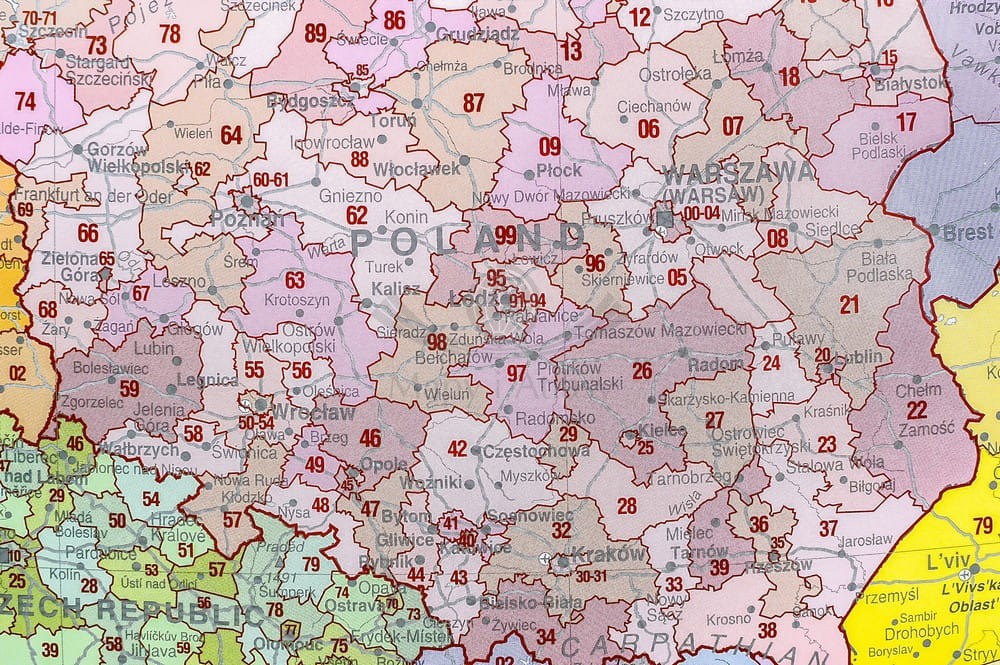 Europa 1:4 250 000. Mapa ścienna. Kody pocztowe