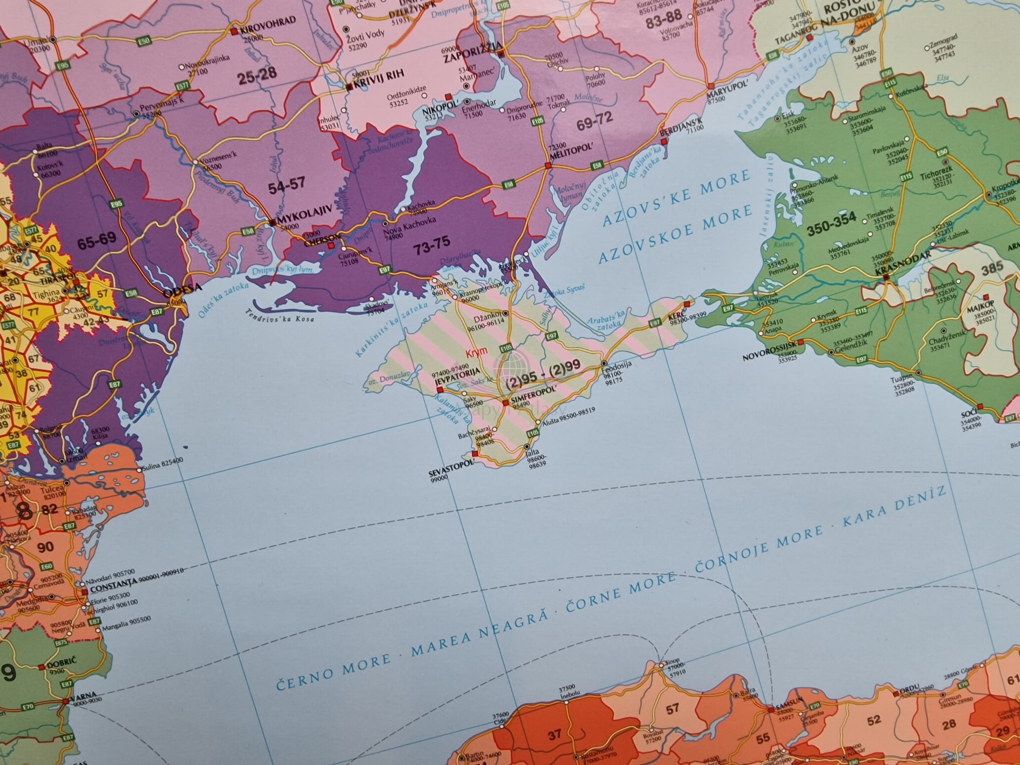 Europa z Turcją 1:3 600 000. Mapa ścienna. Kody pocztowe. Układ poziomy