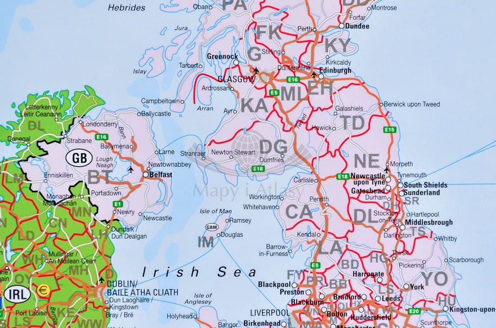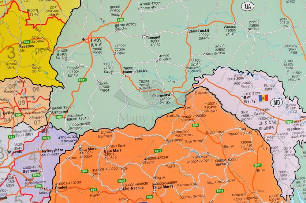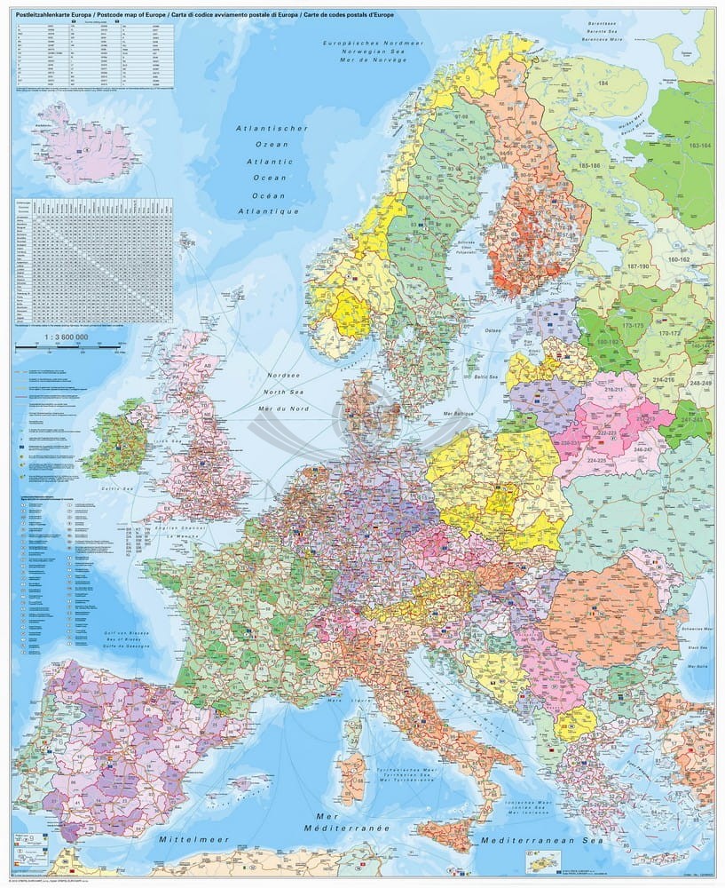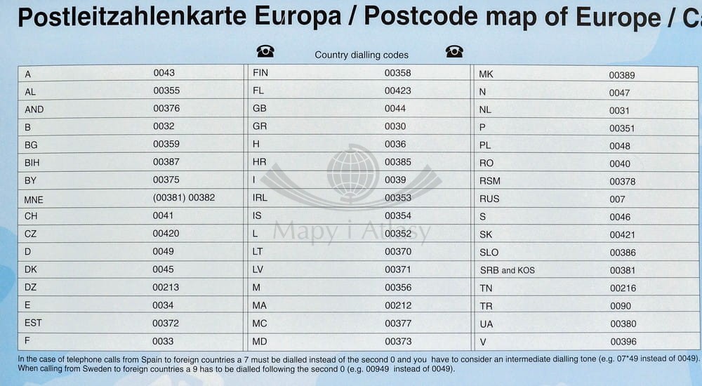 Europa 1:3 600 000. Mapa ścienna. Kody pocztowe. Układ pionowy