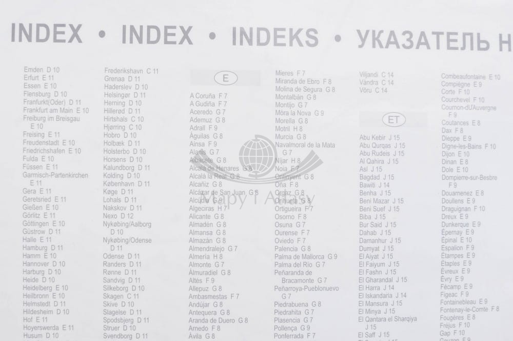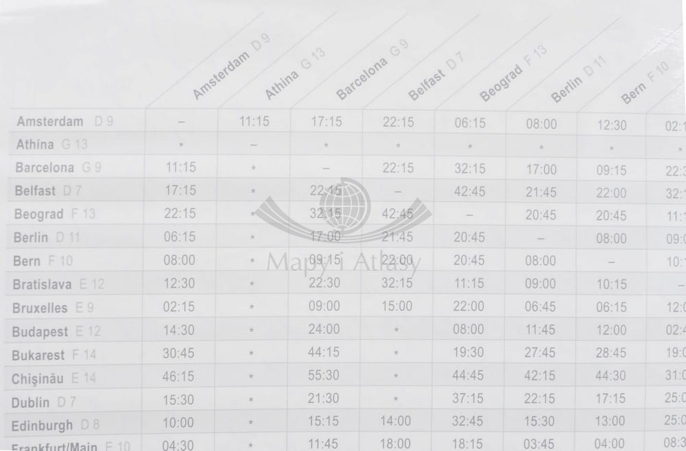 Na drugiej stronie znajduje się europejski rozkład kolei oraz indeks miejscowości.