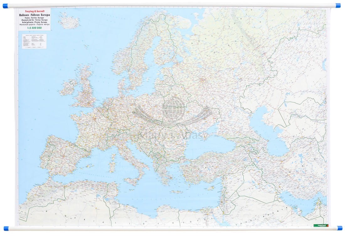 Europa 1:5 500 000. Mapa ścienna kolejowa, promy. FB