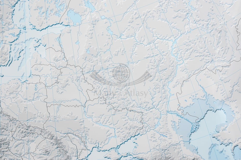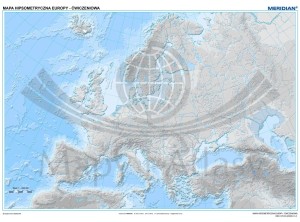 Ścienna, ćwiczeniowa mapa szkolna do geografii w skali 1:3 200 000 przedstawiająca ukształtowanie powierzchni Europy. W treści mapy oprócz przebiegów poziomic znajduje się warstwa hydrografii oraz granic państwowych.