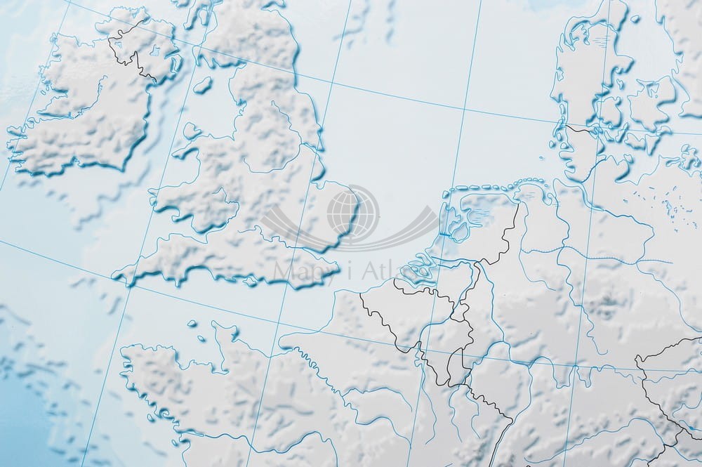 Europa 1:3 200 000. Mapa ścienna konturowa, hipsometryczna (ćwiczeniowa) + komplet 4 markerów. Drewniane półwałki