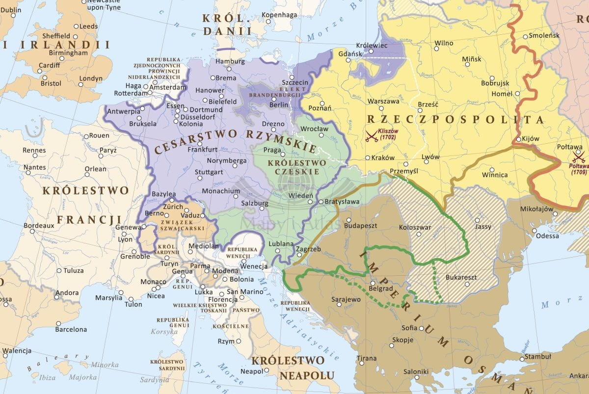 Europa na przełomie XVII i XVIII wieku. Mapa ścienna. Wersja STRONG