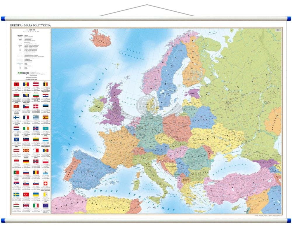 Polityczna mapa ścienna Europy w skali 1:4 500 000 wydawnictwa ArtGlob.