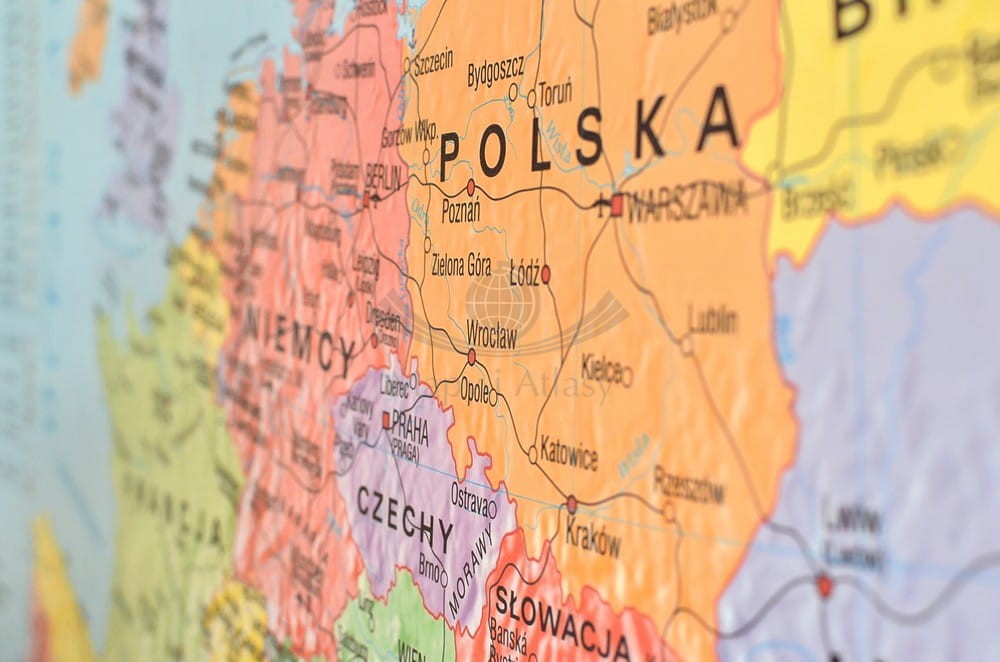 Europa 1:4 000 000. Mapa ścienna polityczna. Drewniane półwałki.