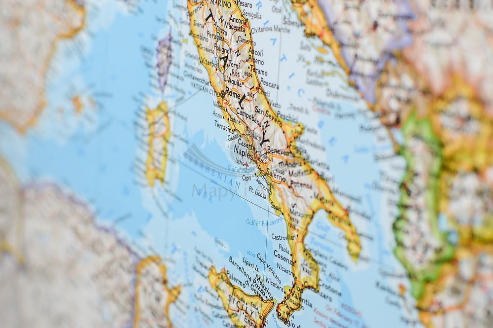 Mapa oprawiona w białe plastikowe rurki, zalaminowana na matowo (nie odbija światła).