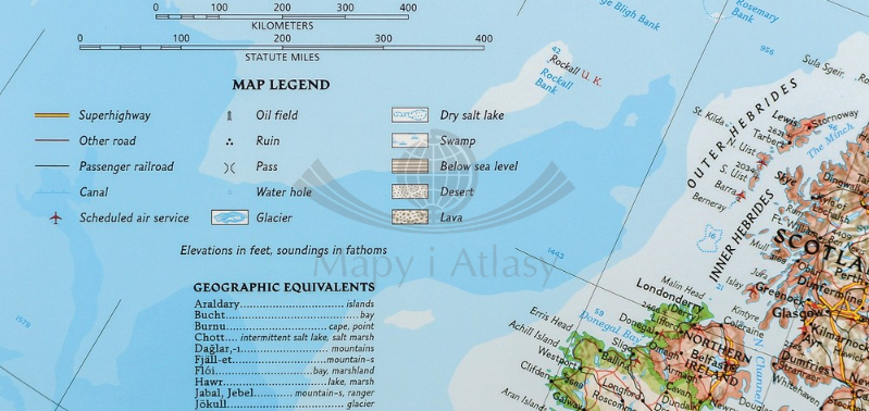 Zawieszka ze sznurka umożliwia zawieszenie mapy na ścianie lub stojaku na mapy.