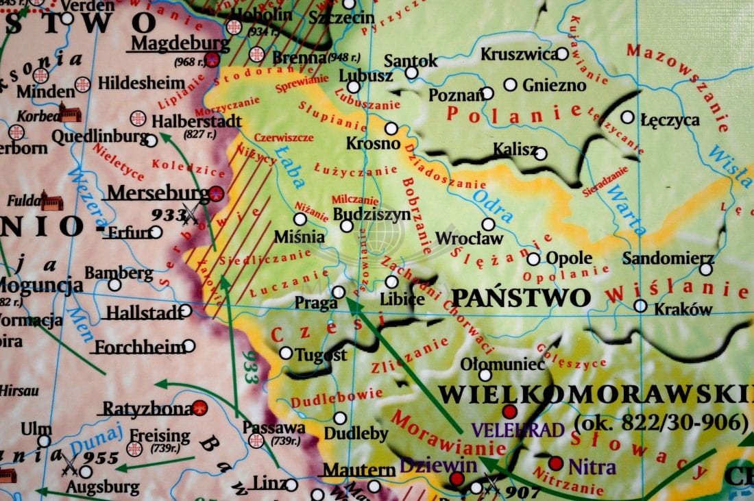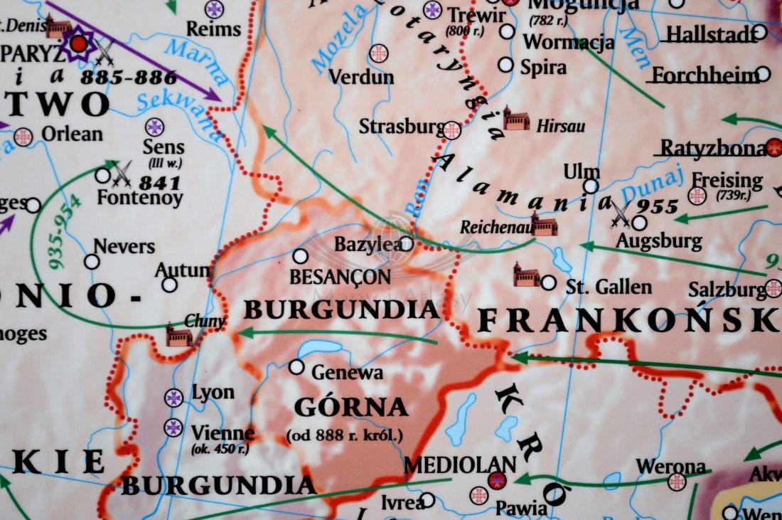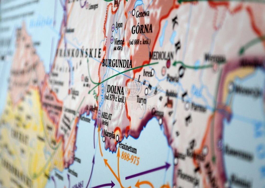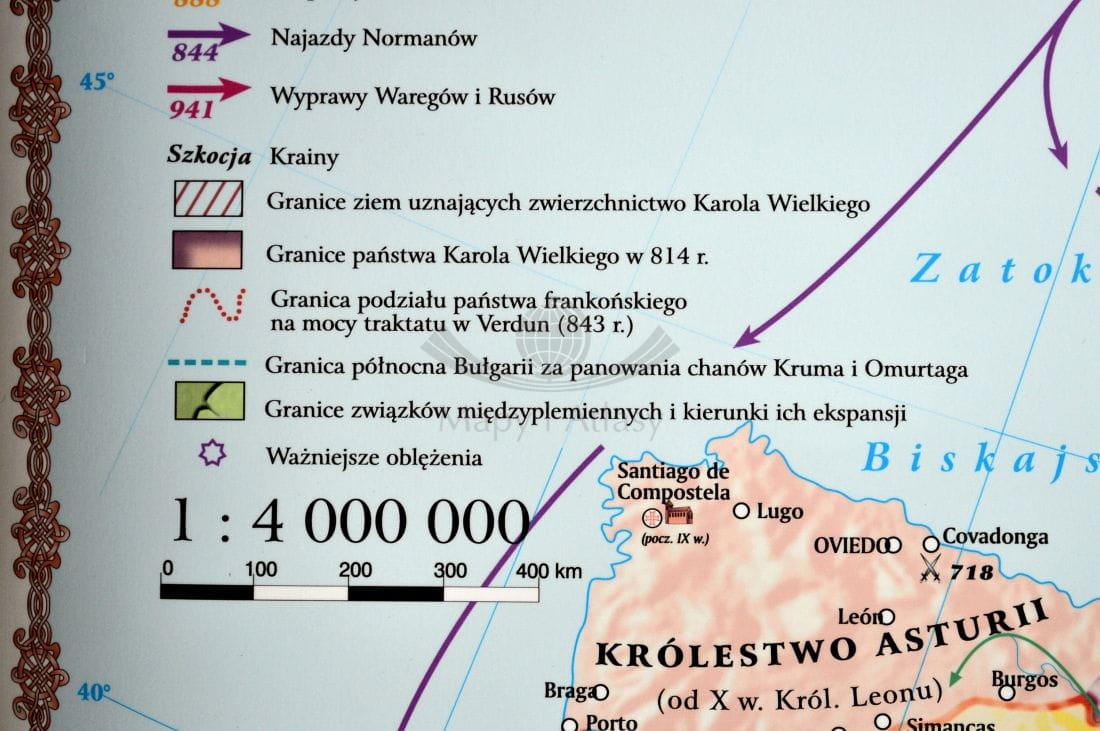 Europa wczesnośredniowieczna (od VIII wieku do połowy X). Mapa ścienna 200 x 150 cm. Drewniane półwałki