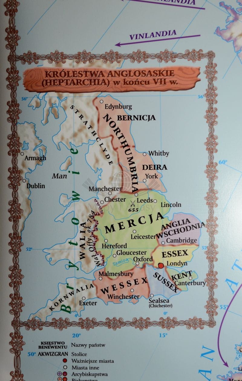 - Królestwa anglosaskie (Heptarchia) w końcu VII wieku,