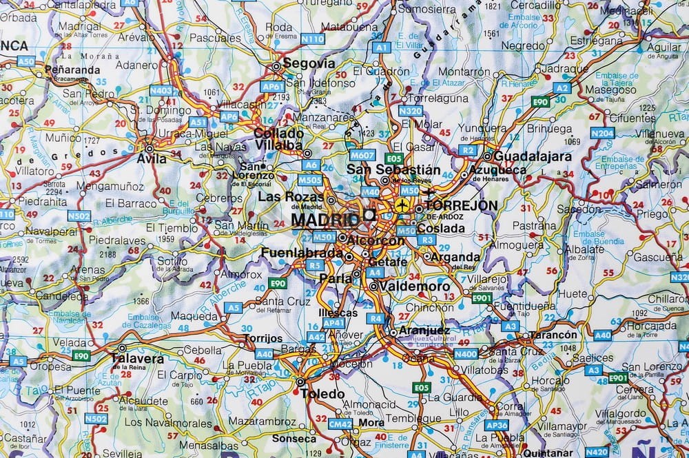 Drogowa mapa ścienna Europy Zachodniej w skali 1:2 000 000 wydawnictwa Freytag & Berndt obejmująca kraje: zachodnie Niemcy, Dania, Szwajcaria, Beneluks, Francja, Wielka Brytania, Hiszpania, Portugalia.