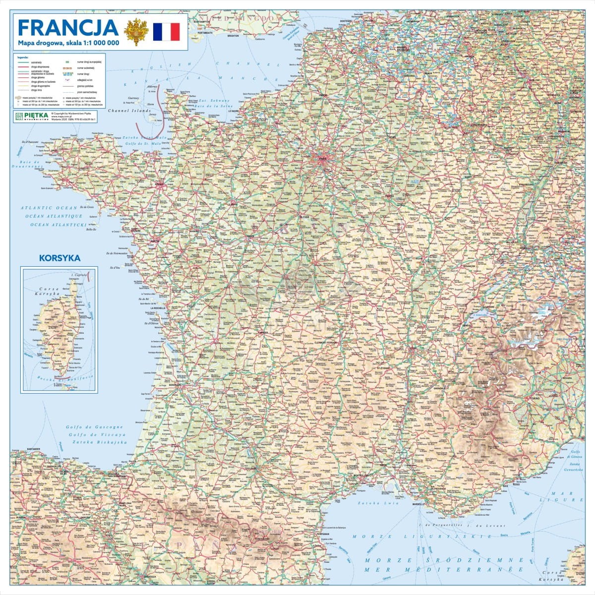 Francja 1:1 000 000. Mapa ścienna drogowa. Wersja STRONG