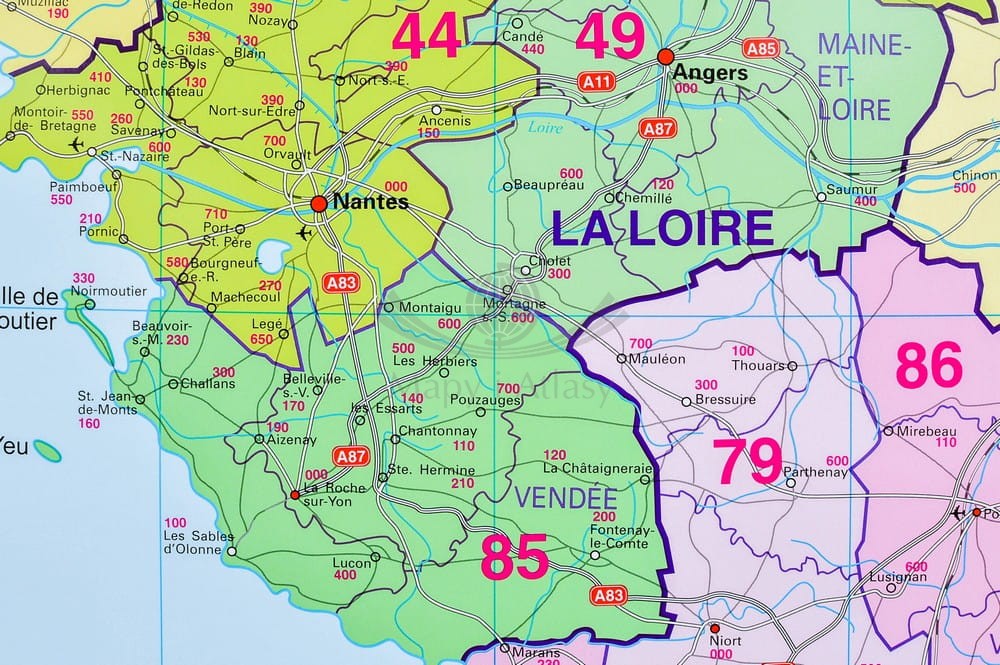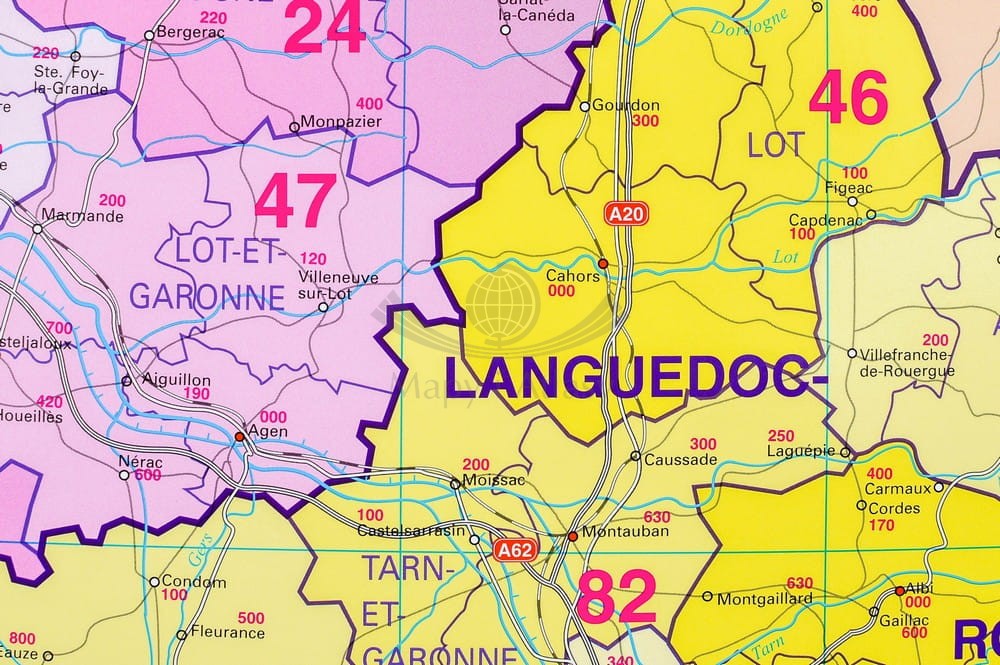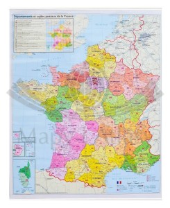 Francja 1:1 000 000. Mapa ścienna administracyjna. Kody pocztowe. Stiefel