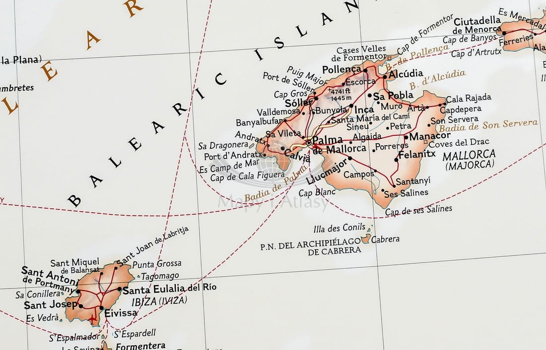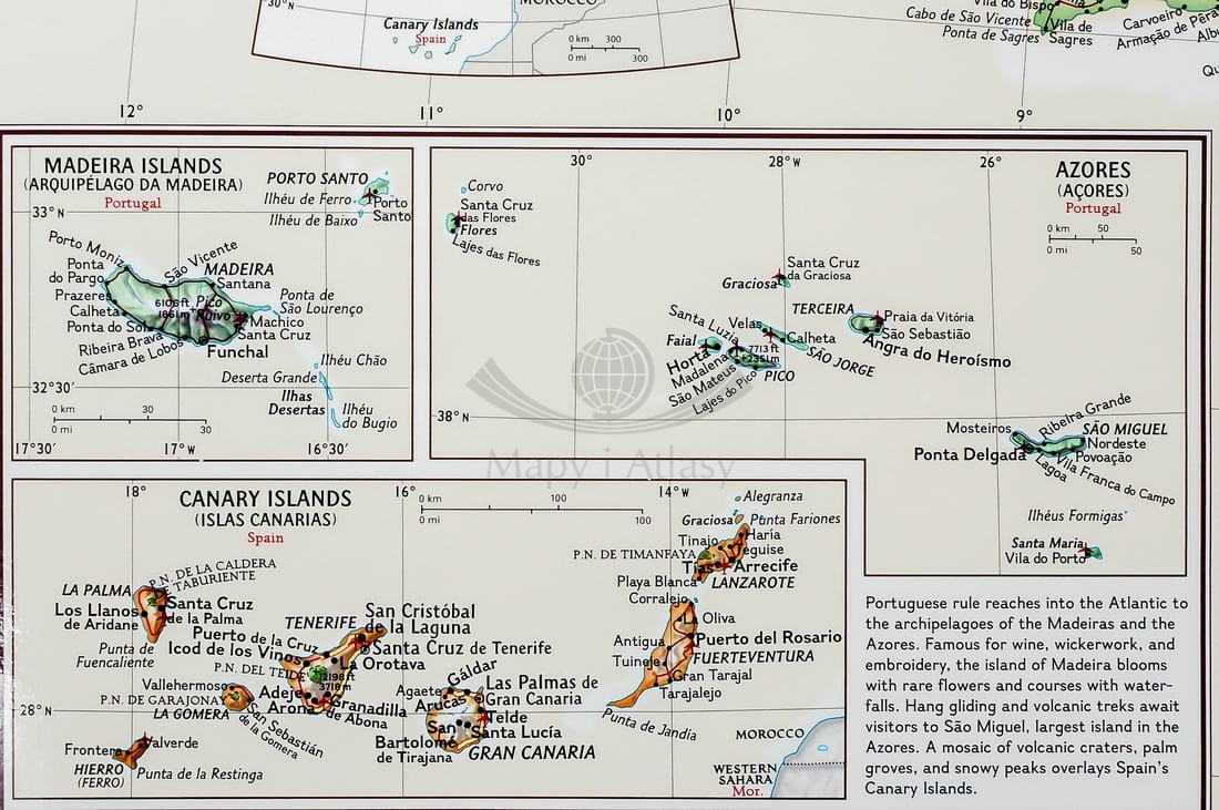 Na mapie dodano mapki Madery, Azorów i Wysp Kanaryjskich.