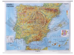 Hiszpania i Portugalia. Mapa ścienna fizyczna. Drewniane półwałki. Stiefel