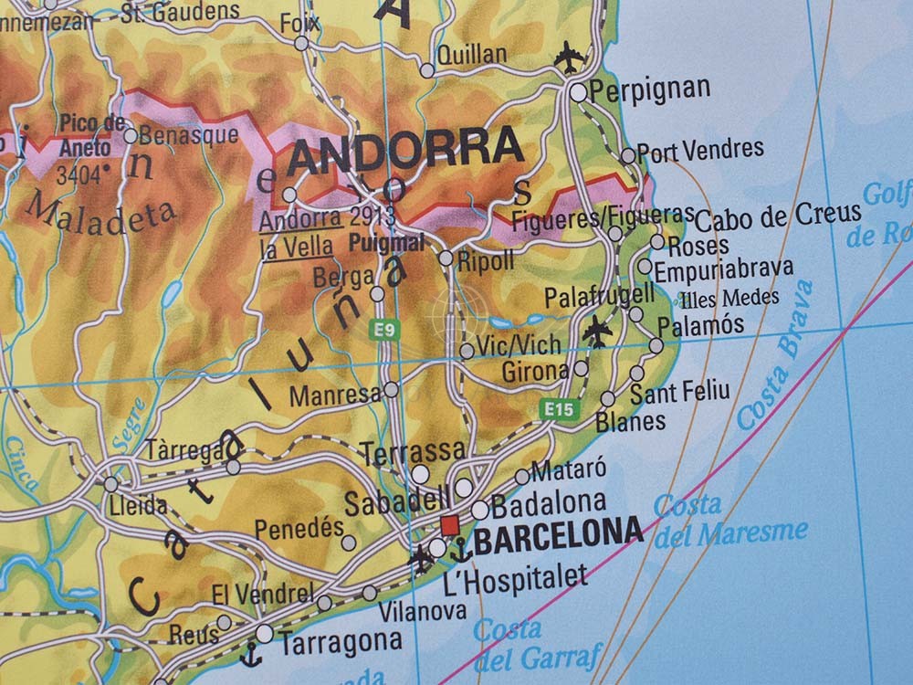 Ścienna mapa fizyczna Hiszpanii i Portugali wydawnictwa Stiefel.