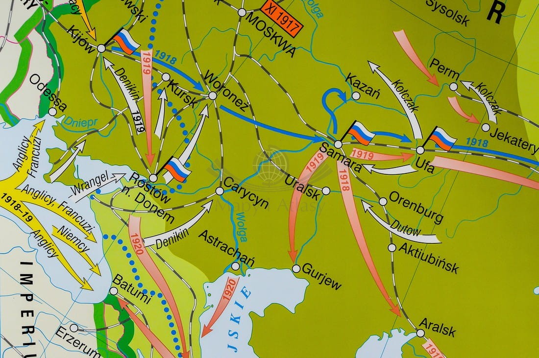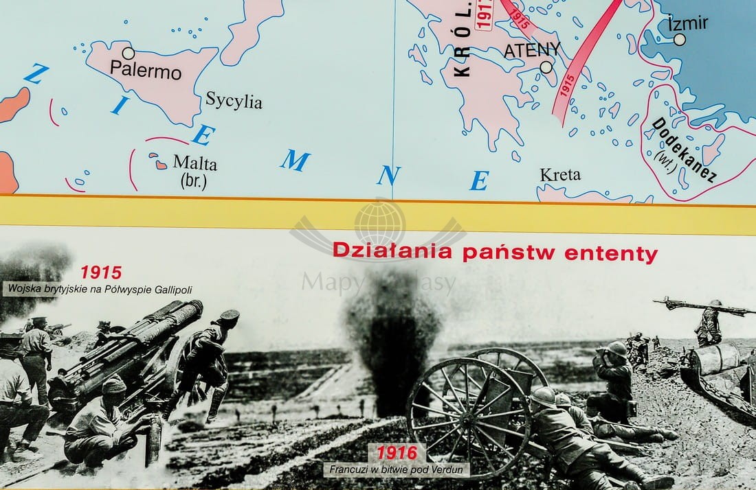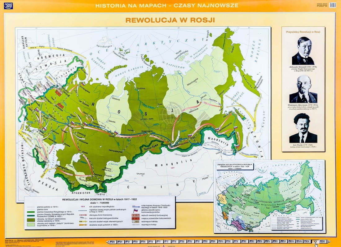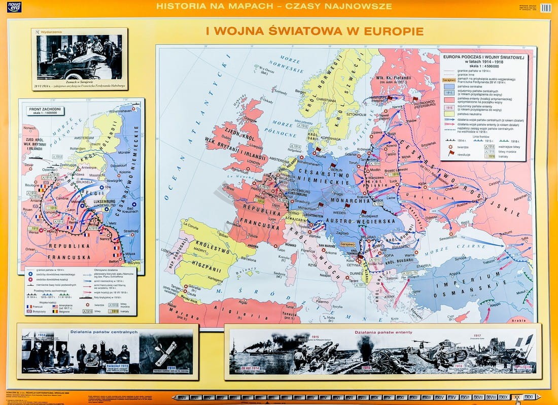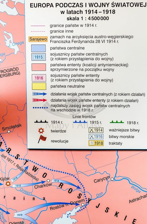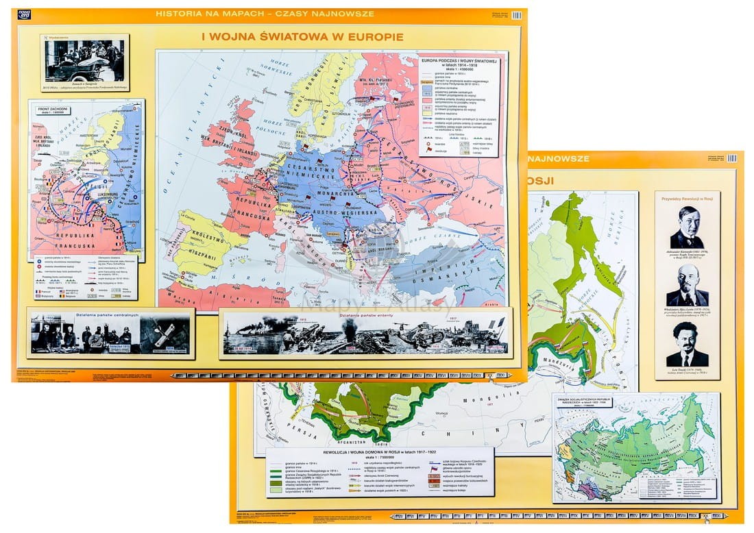 I wojna światowa w Europie / Rewolucja w Rosji. Dwustronna mapa ścienna