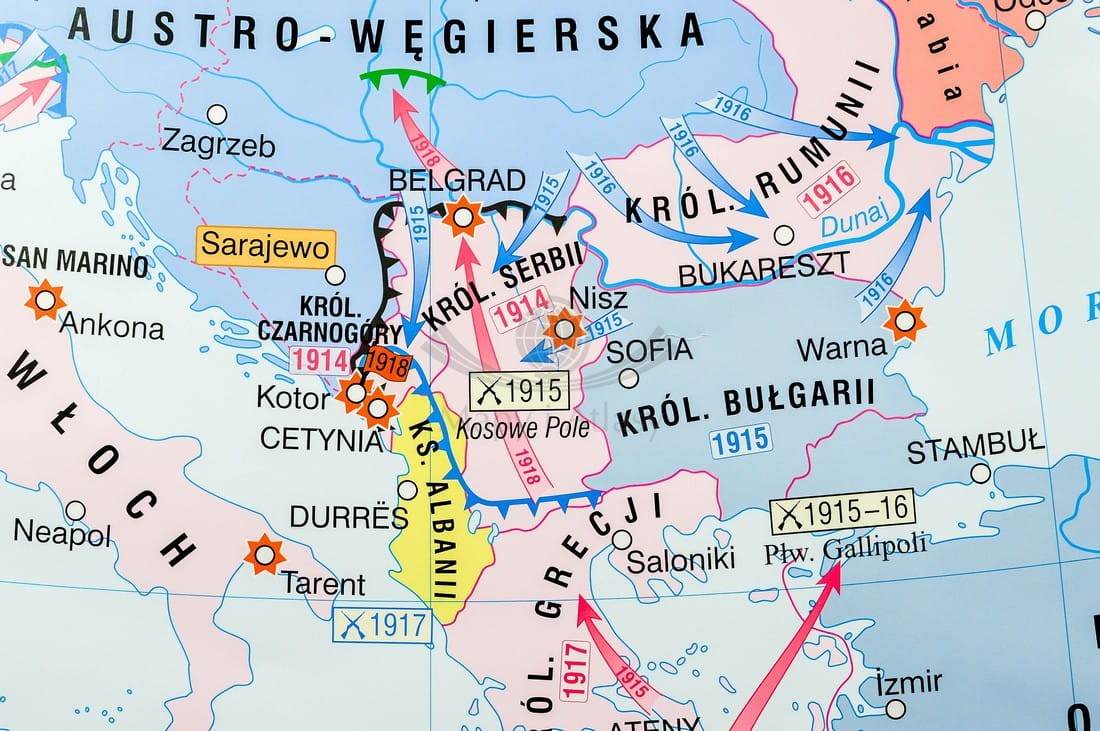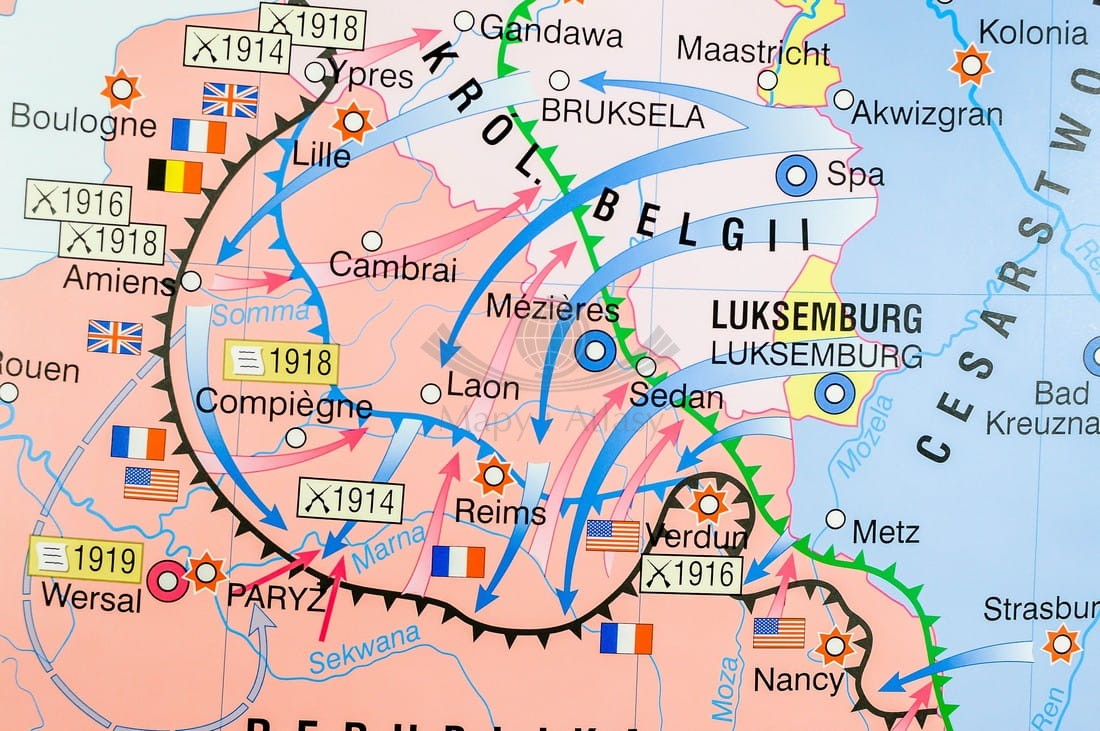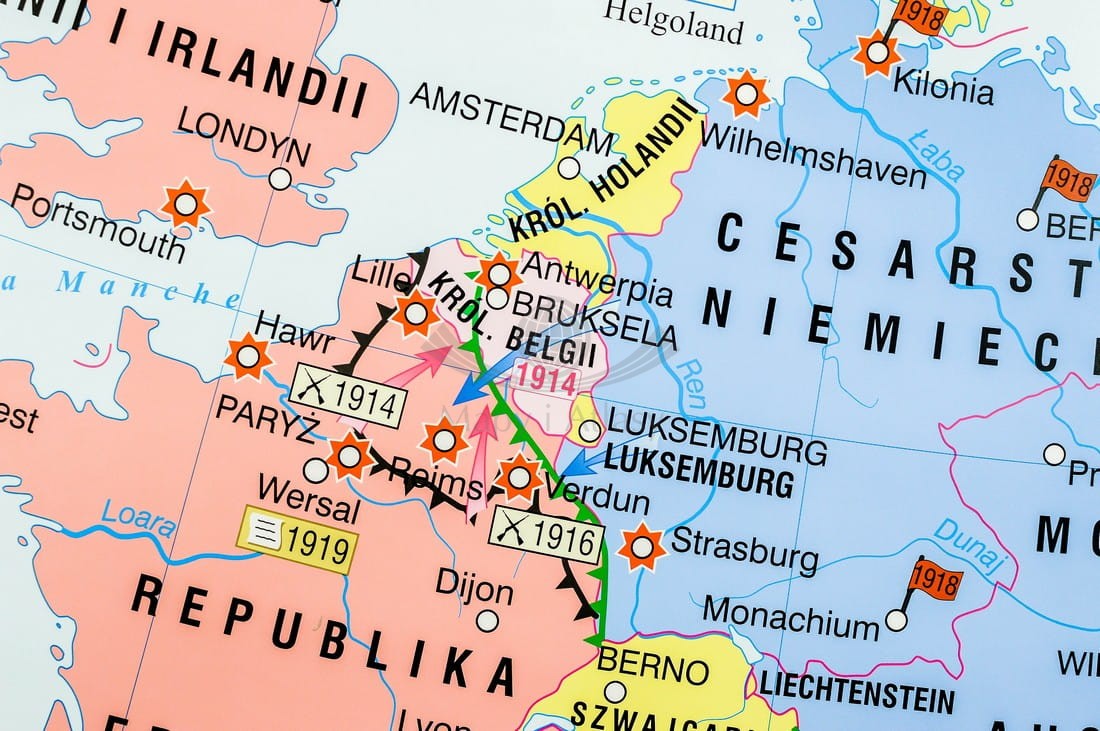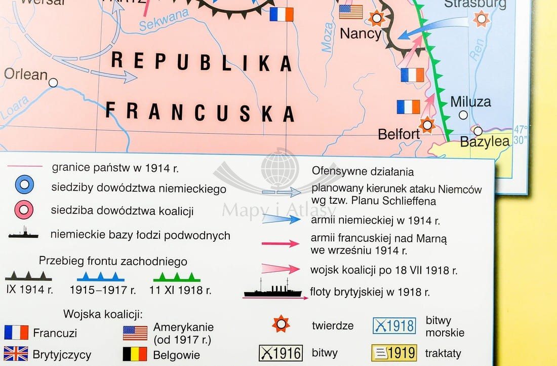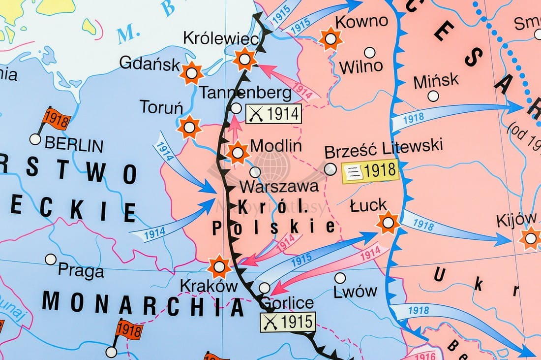I wojna światowa w Europie / Rewolucja w Rosji. Dwustronna mapa ścienna