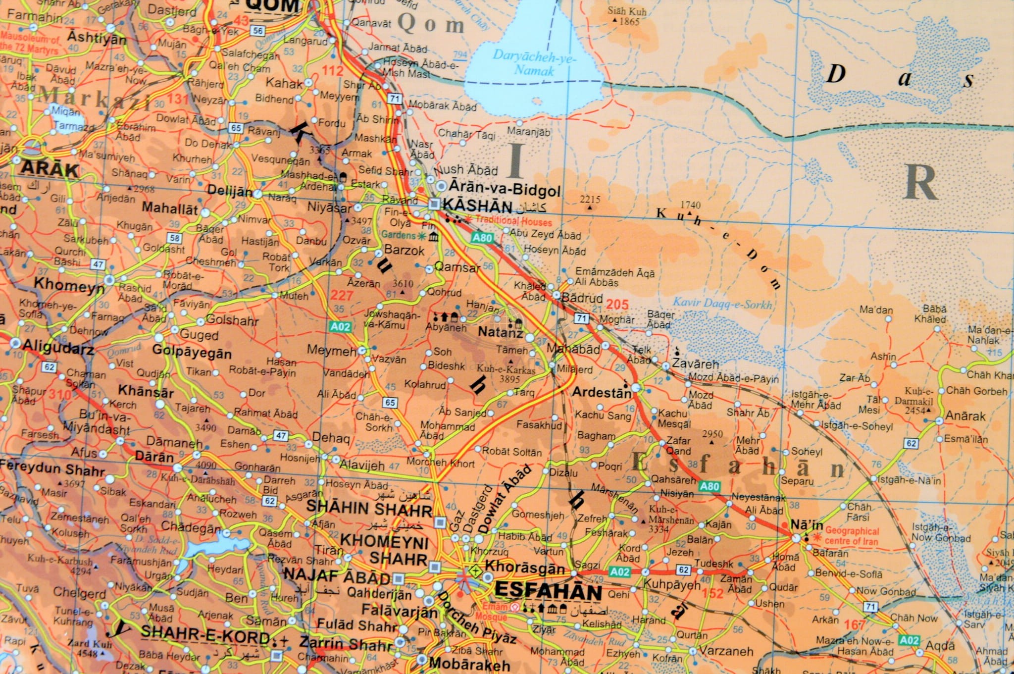 Ścienna mapa fizyczno-drogowa Iranu w skali 1:2 000 000. Zawiera karton z podziałem Iranu na jednostki administracyjne. Oprawiona w rurki plastikowe z zawieszką ze sznurka - mapa gotowa do powieszenia.