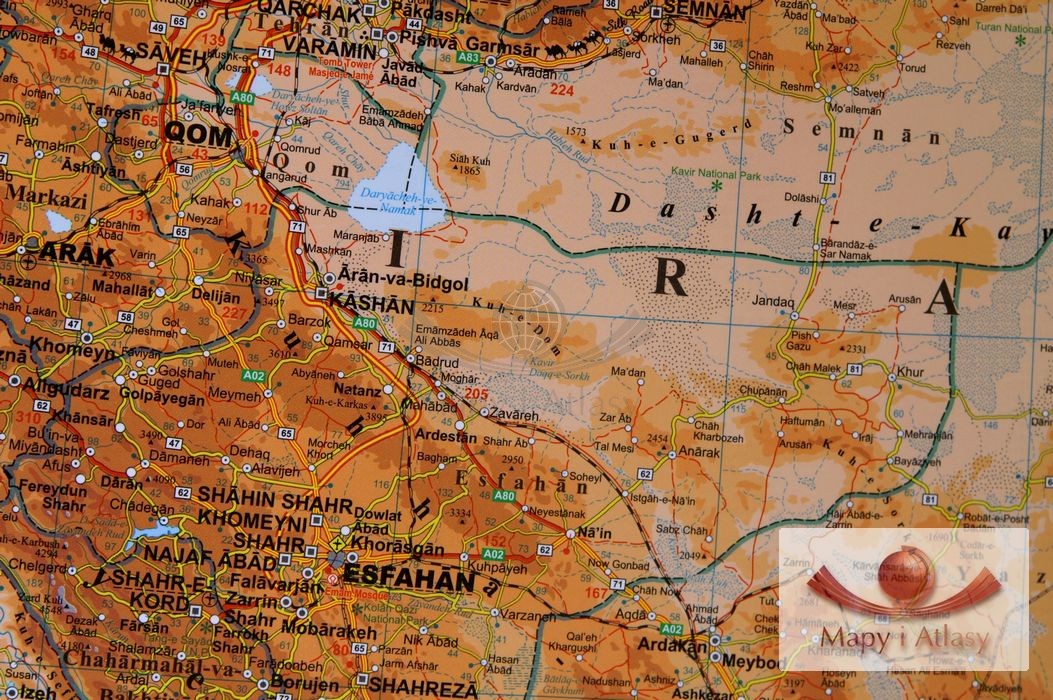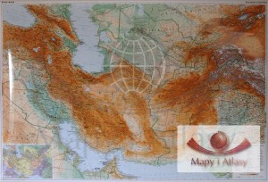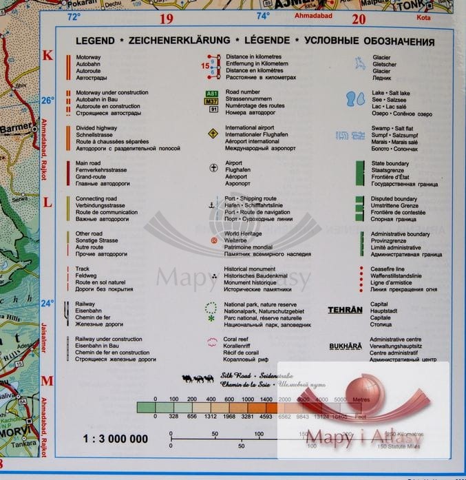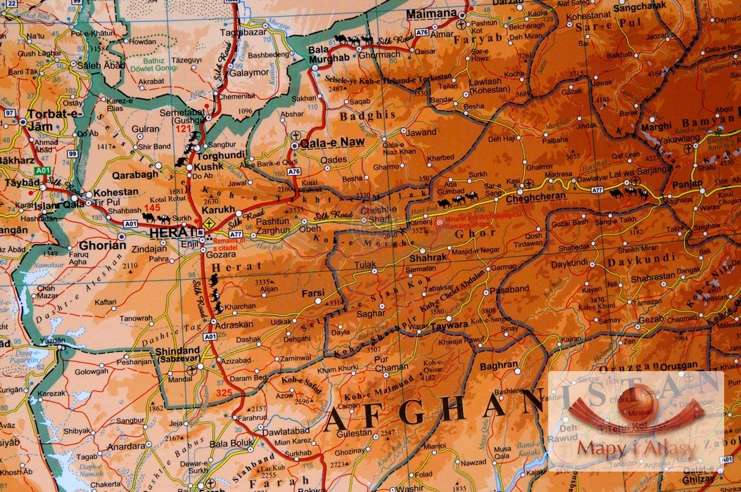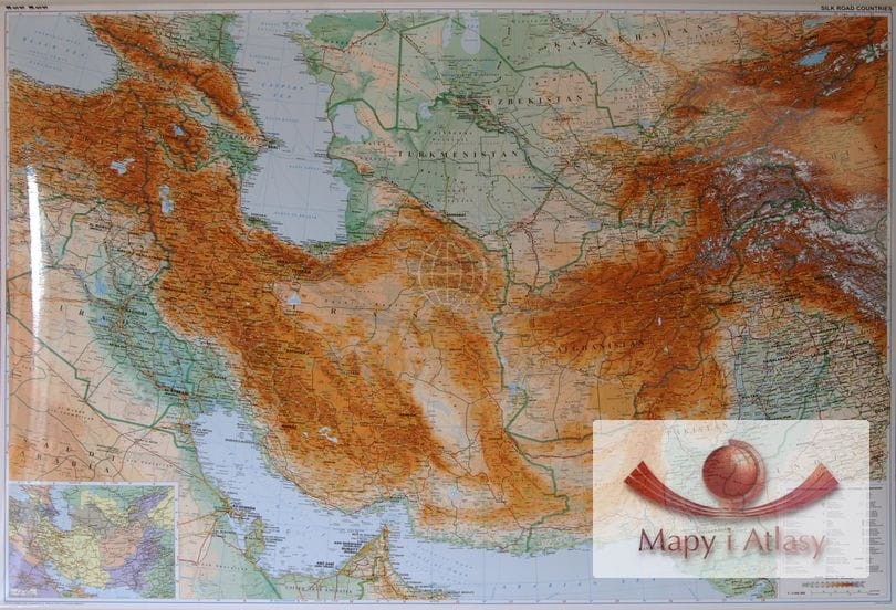 Szlak Jedwabny / Irak, Iran, Azerbejdżan, Armenia, Turkmenistan, Pakistan, Afganistan, Kirgistan, Tajikistan, Kuwej, Katar. Mapa ścienna fizyczno-drogowa