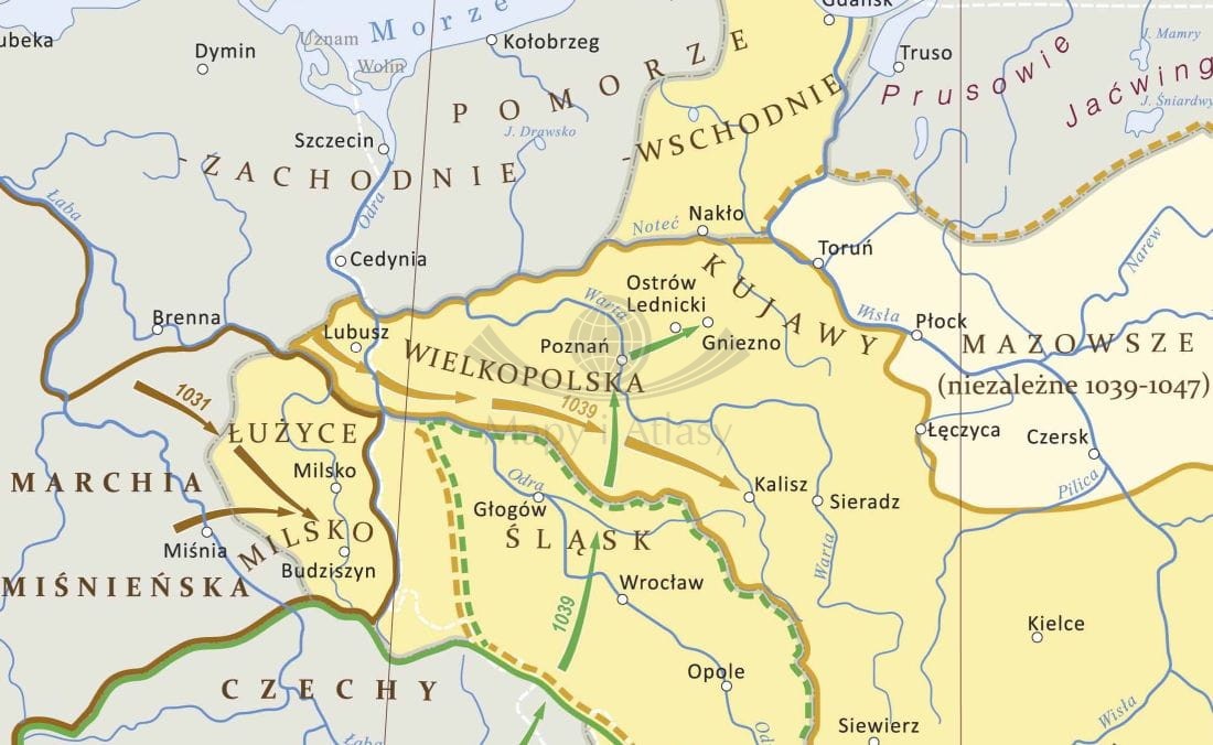- kierunki działań wojsk niemieckich, czeskich, węgierskich i ruskich w 1031 roku,