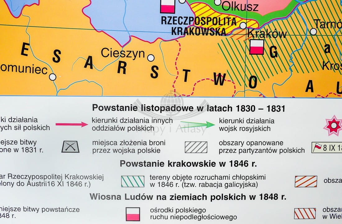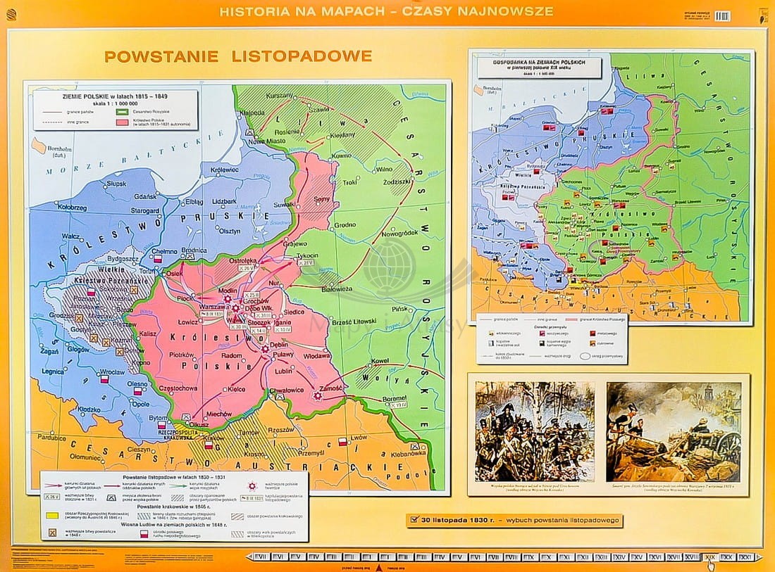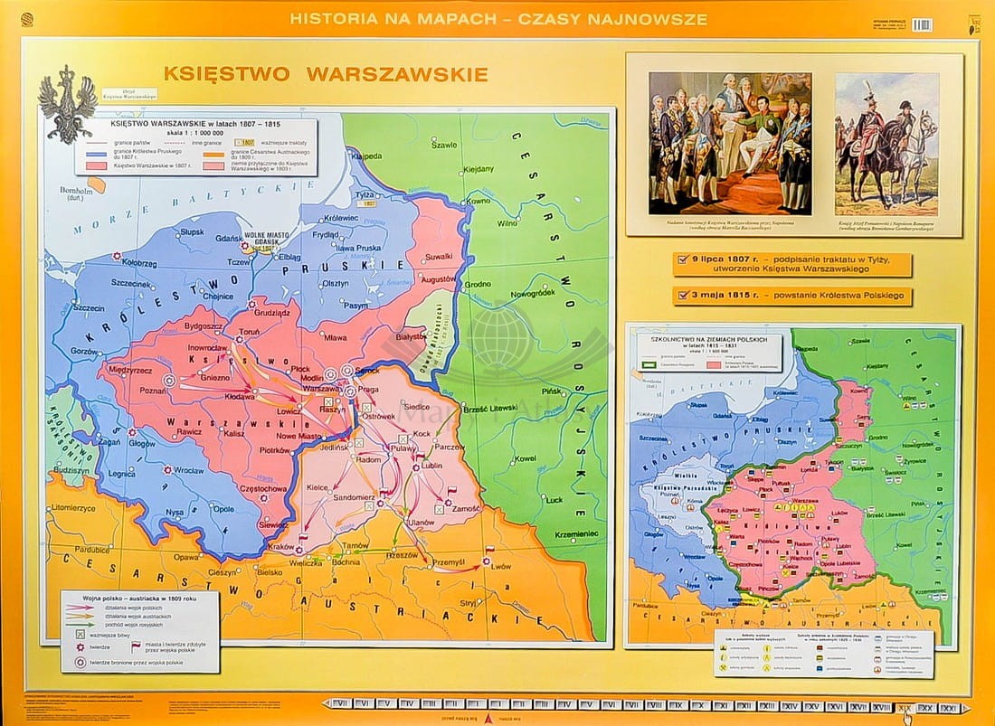 Księstwo Warszawskie / Powstanie listopadowe. Dwustronna mapa ścienna