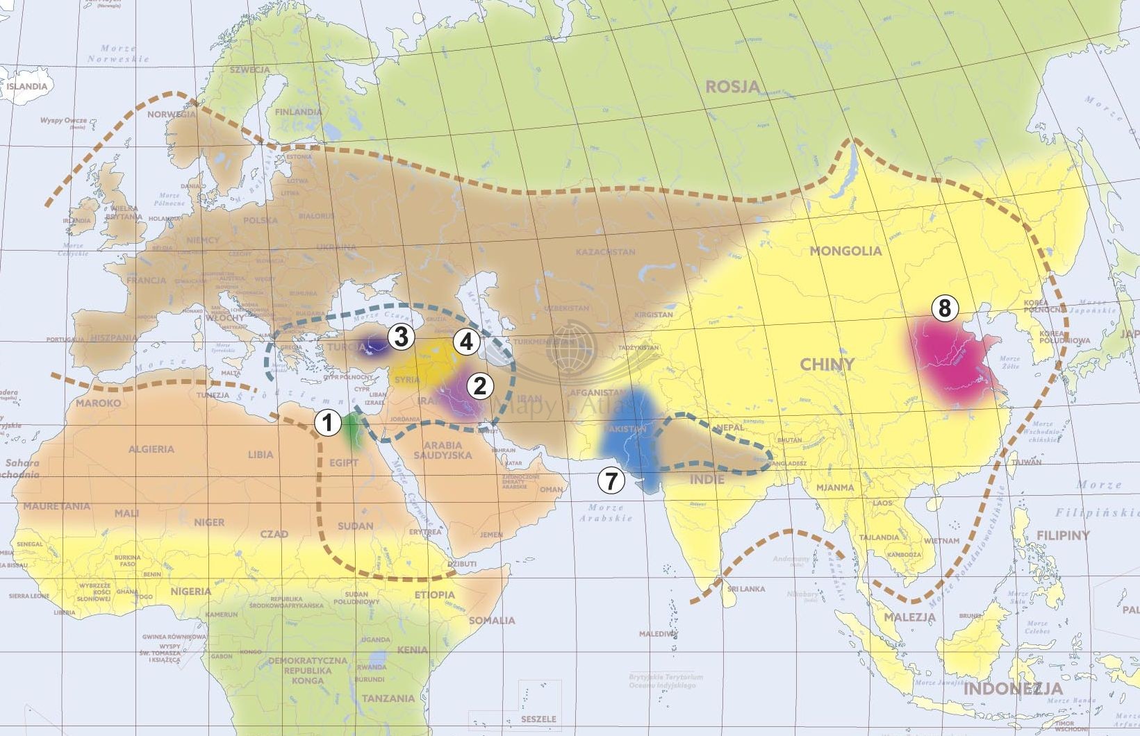- lokalizację społeczeństw tworzących kultury i organizacje państwowe,