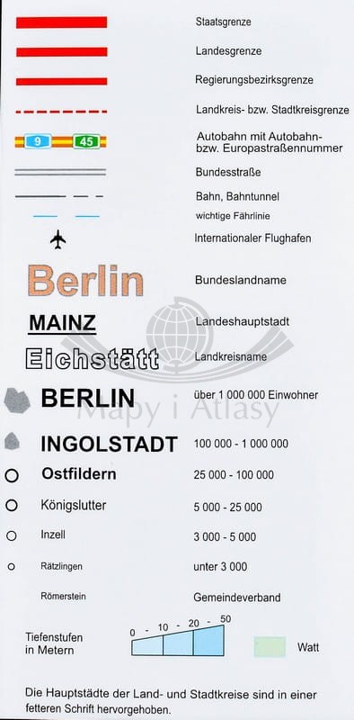 Niemcy 1:750 000. Mapa ścienna administracyjno-drogowa. Stiefel