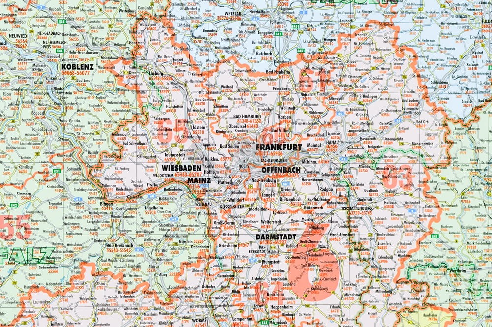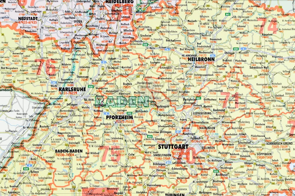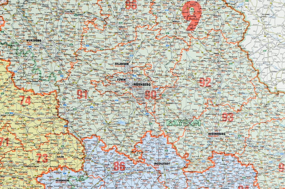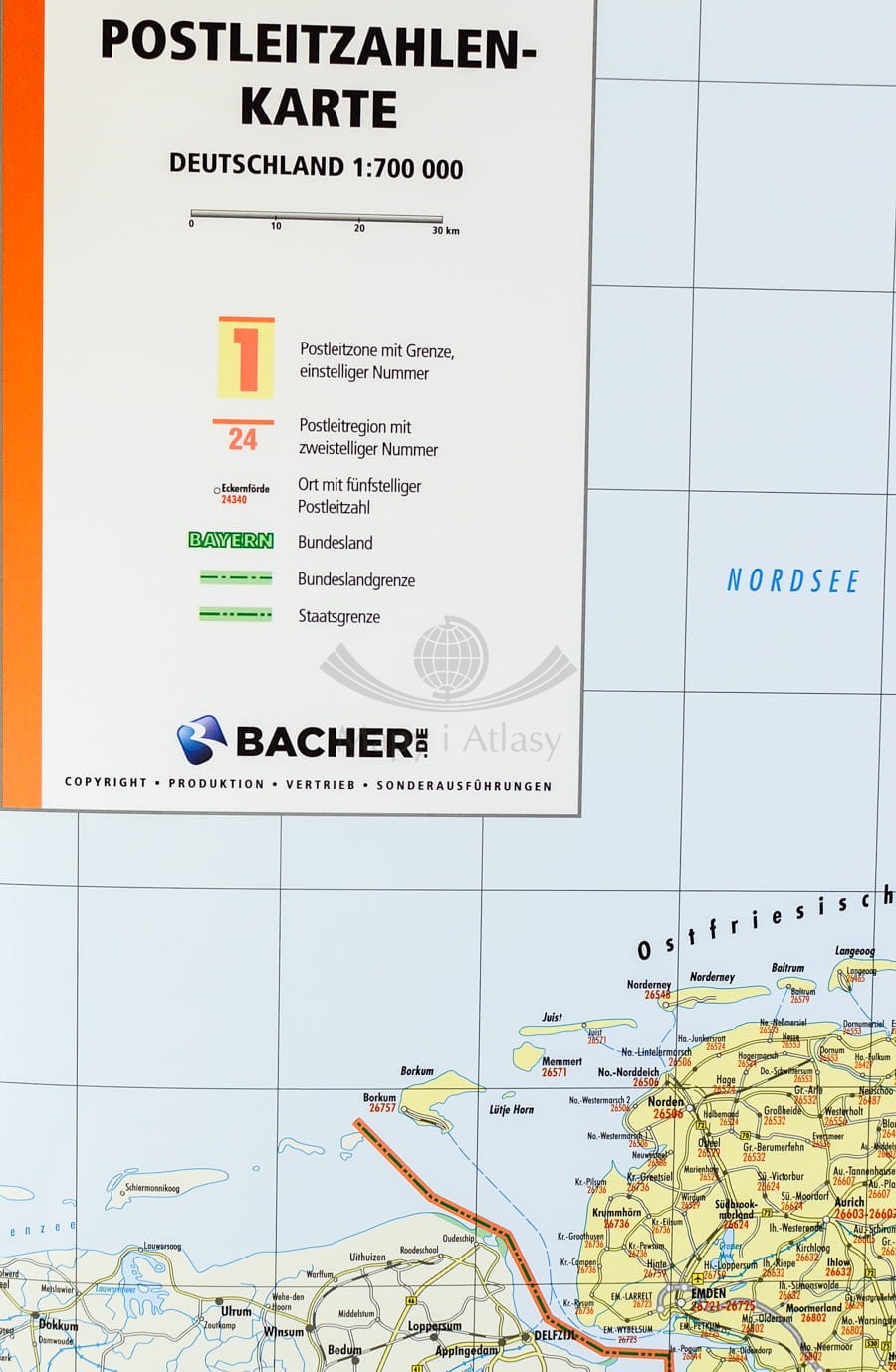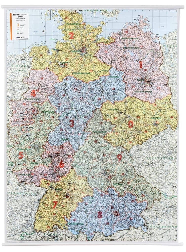 Niemcy 1:800 000. Mapa ścienna. Kody pocztowe. Postleit-Karte
