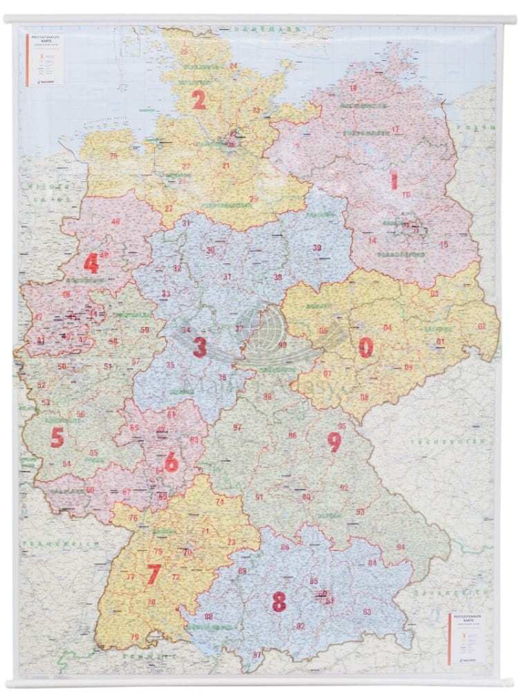 Niemcy 1:500 000. Mapa ścienna. Kody pocztowe. Postleit-Karte