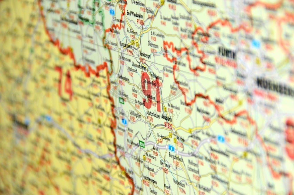 - kody pocztowe, granice okręgów pocztowych,