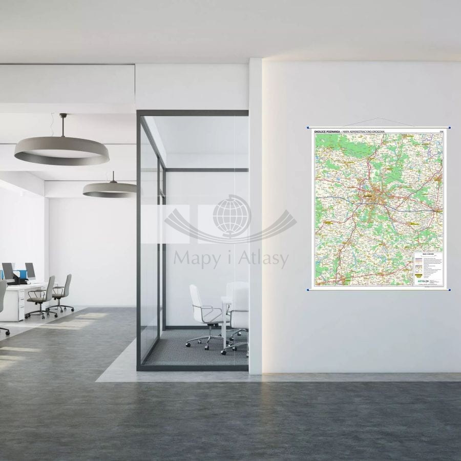 Administracyjno-drogowa mapa ścienna okolic Poznania w skali 1:100 000 wydawnictwa ArtGlob.