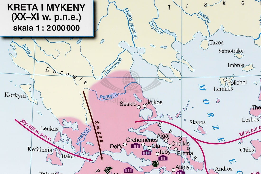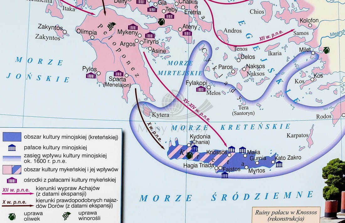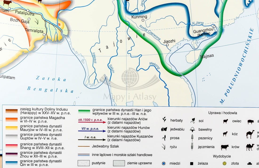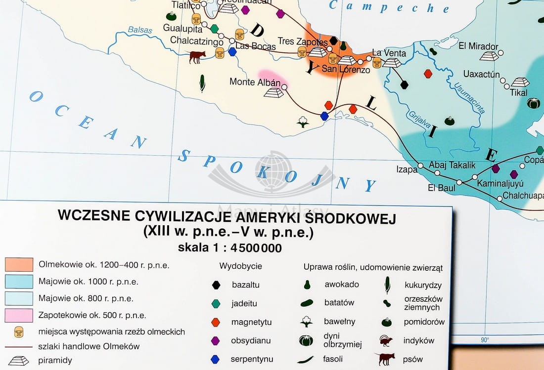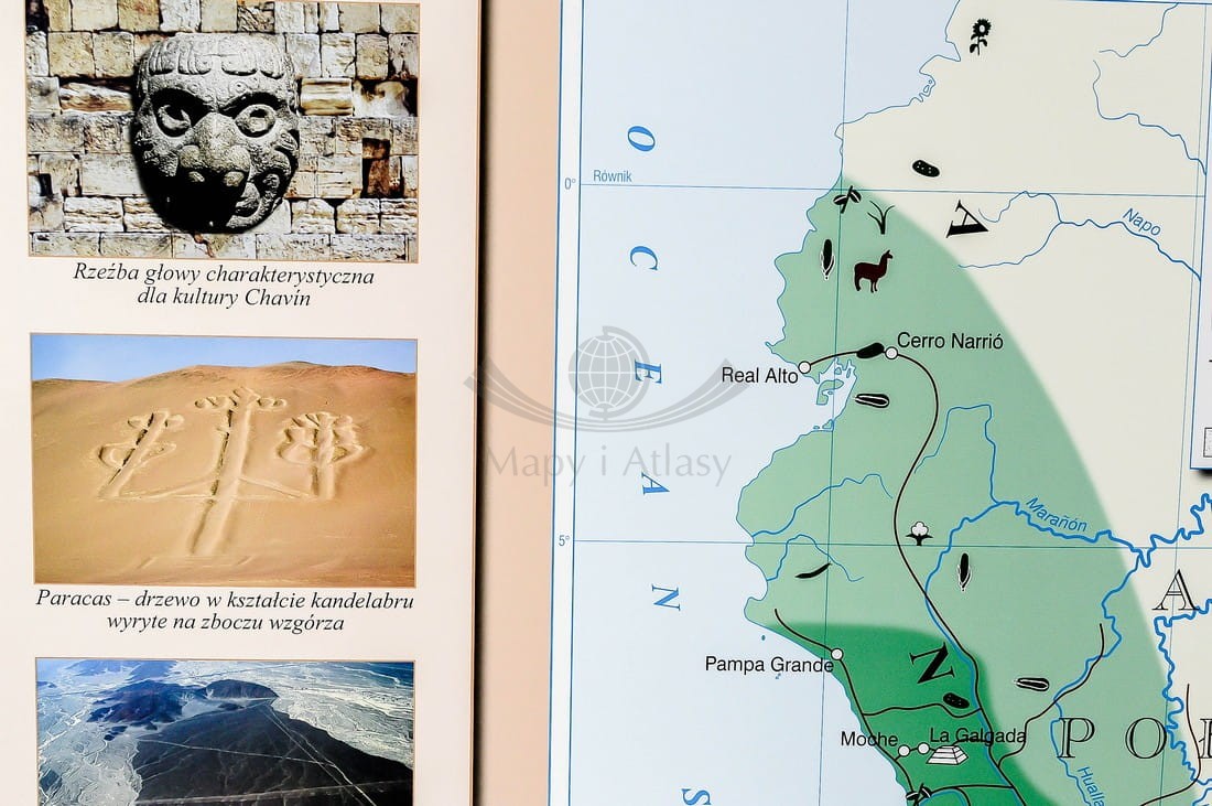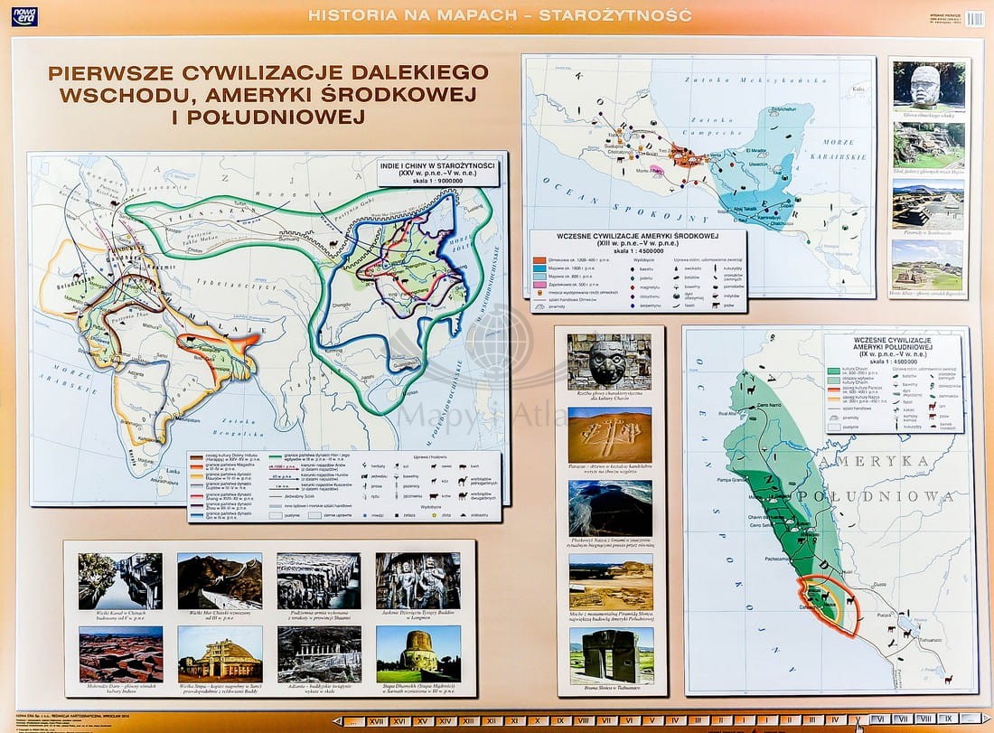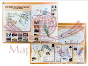 Pierwsze cywilizacje na świecie / Dalekiego Wschodu, Ameryki Środkowej i Południowej. Dwustronna mapa ścienna. Nowa Era