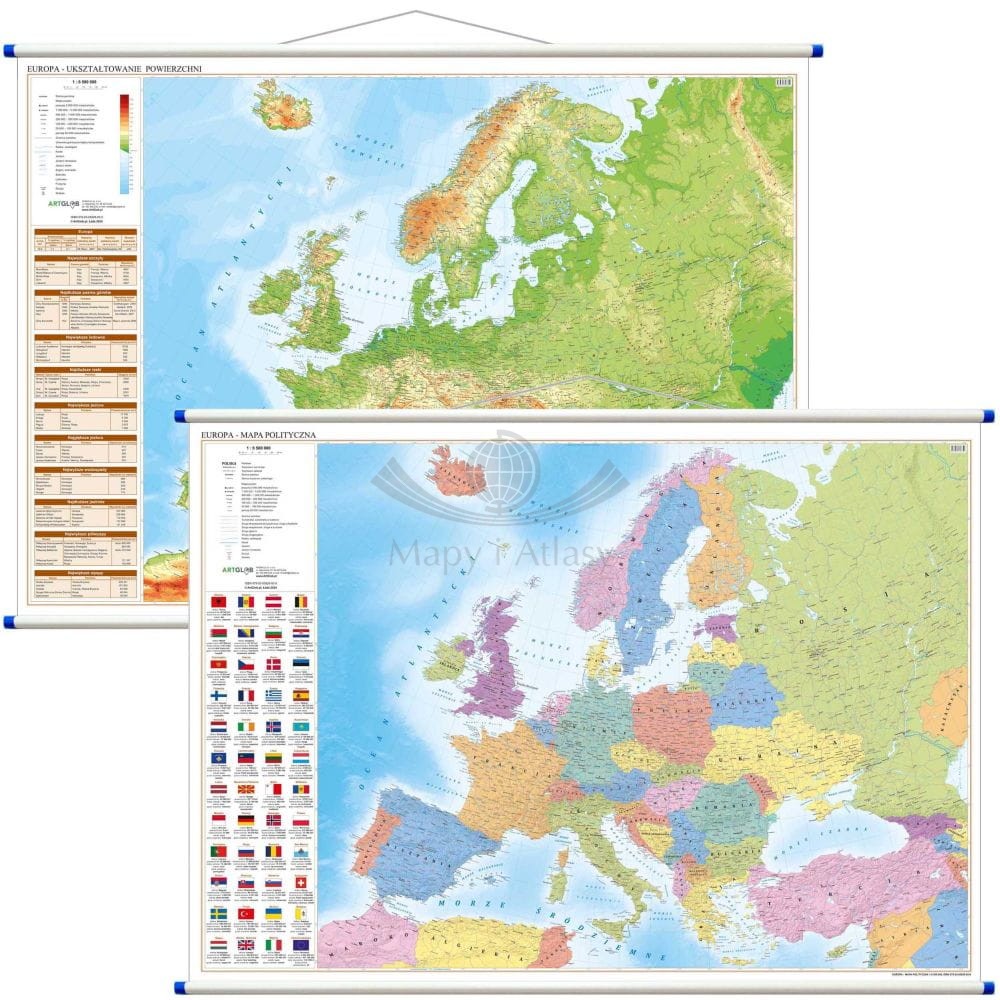 2. Dwustronna mapa ścienna Europy - polityczna i fizyczna w skali 1:7 000 000 - wyd. 2024.