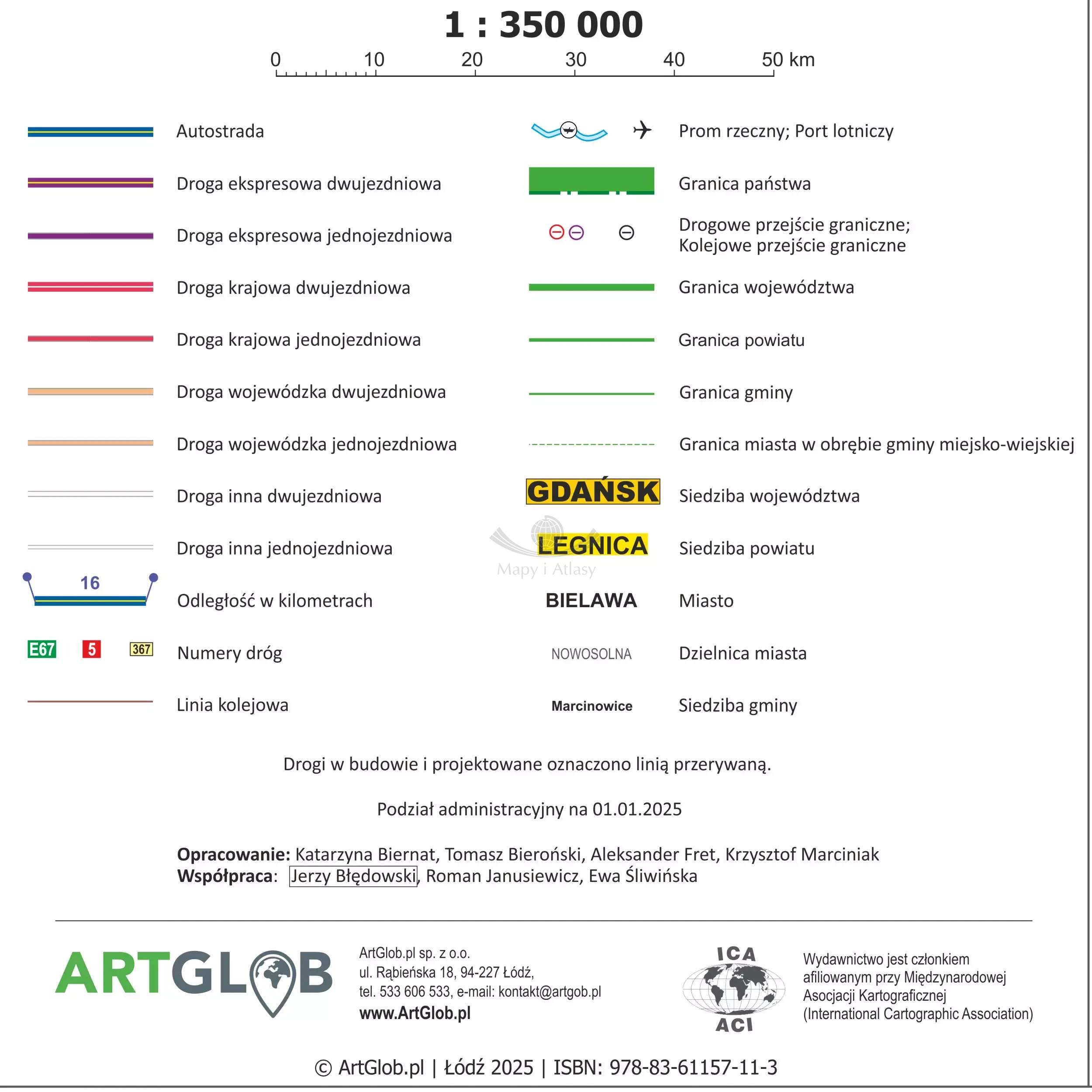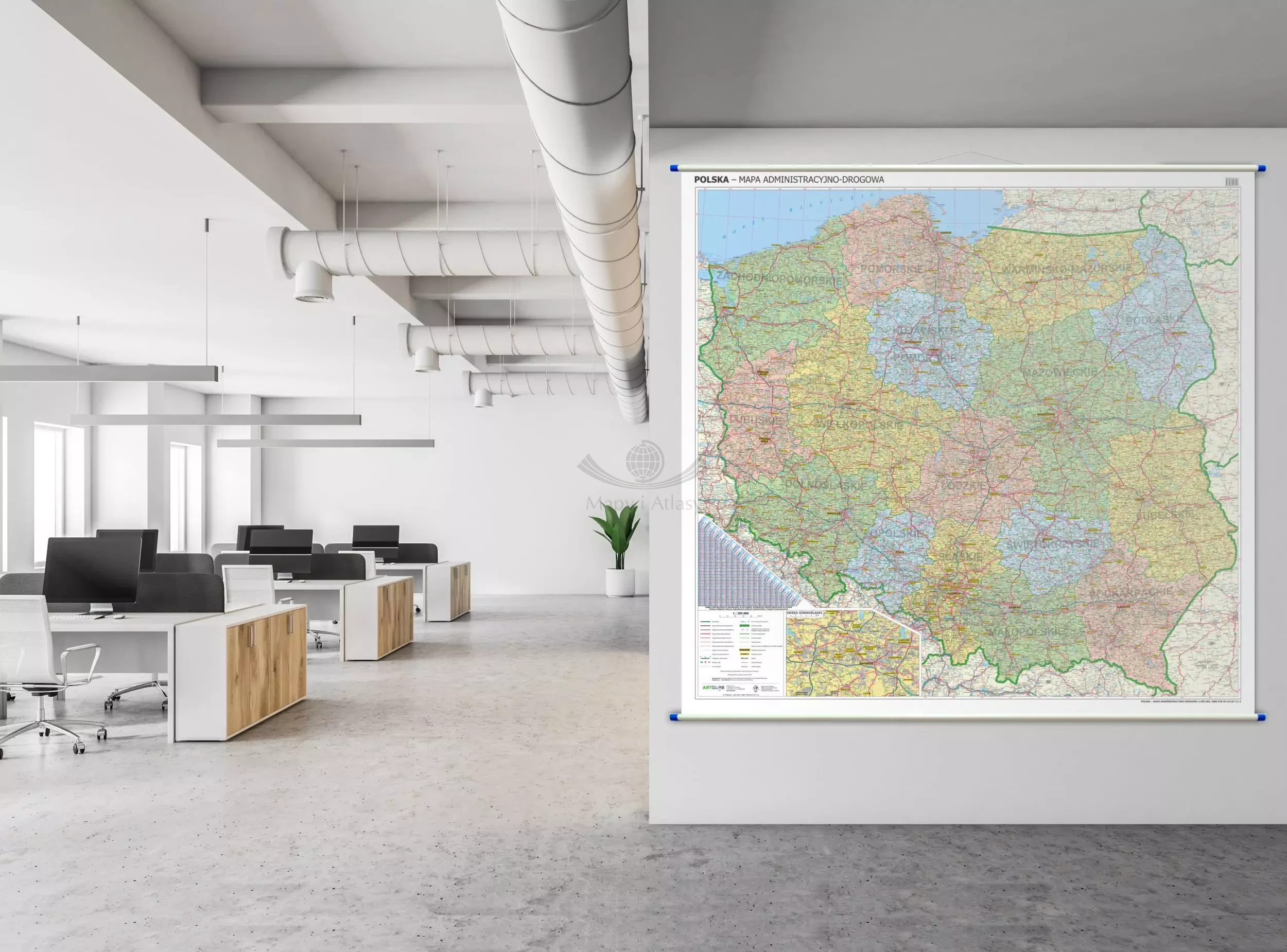 Mapa ścienna administracyjno-drogowa Polski w skali 1:350 000 wydawnictwa ArtGlob.