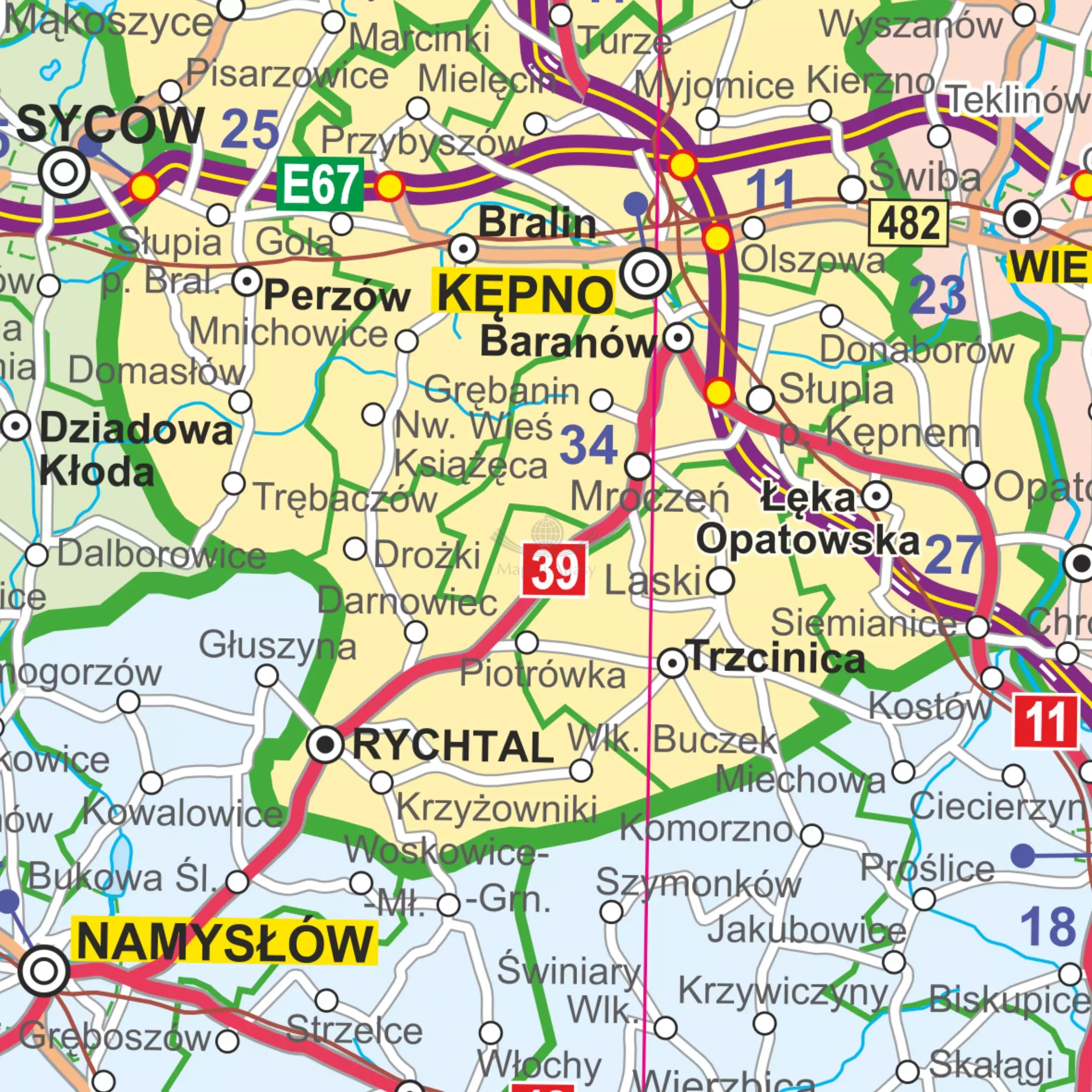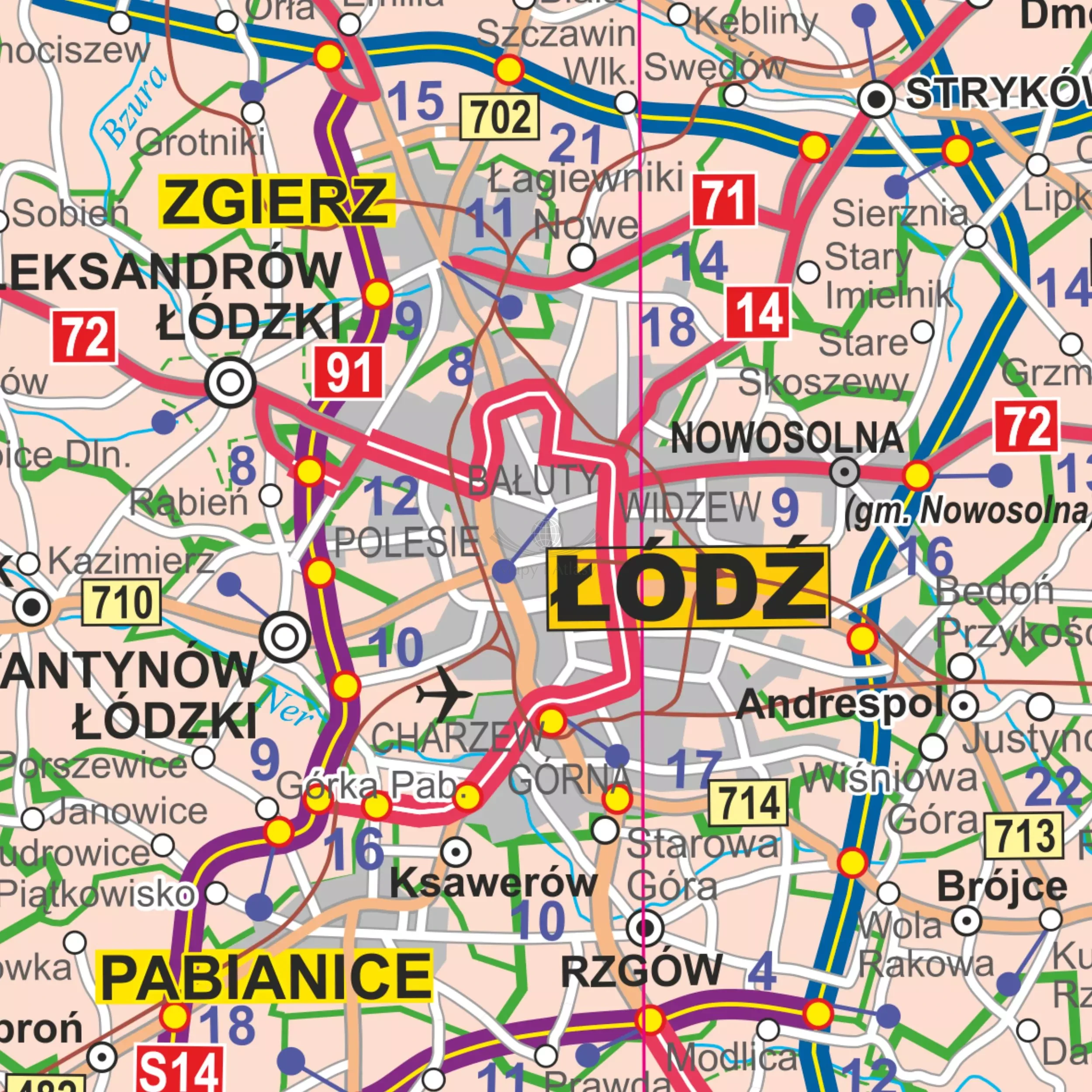 - zaznaczone drogi ekspresowe i autostrady w budowie,