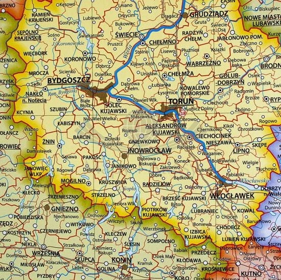 - granice województw, powiatów, gmin,