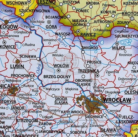 Mapa fizyczna Polski przedstawia ukształtowanie powierzchni Polski w postaci klasycznej siatki poziomic, dodatkowo podkreślona jest to atrakcyjnym wizualnie cieniowaniem. Mapa zawiera również szeroką informację przedstawiającą krainy geograficzne, a także główne drogi. Dodatkowo naniesiono obszary parków narodowych i punktowo parki krajobrazowe waz z ich opisem. Klasyczna kolorystyka, czytelność i najwyższa jakość edytorska dopełnia całości. Mapa jest idealną pomocą dydaktyczną dla uczniów i studentów, jak również przyjemną ozdobą każdego wnętrza.