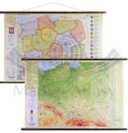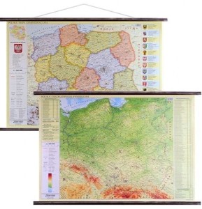 Dwustronna mapa ścienna Polski - fizyczna i administracyjna w skali 1:1 000 000 oprawiona w drewniane półwałki.