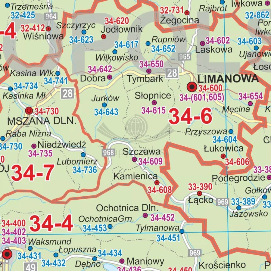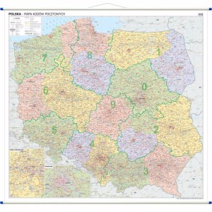 Polska 1:350 000. Mapa ścienna. Kody pocztowe. Wyd. 2025