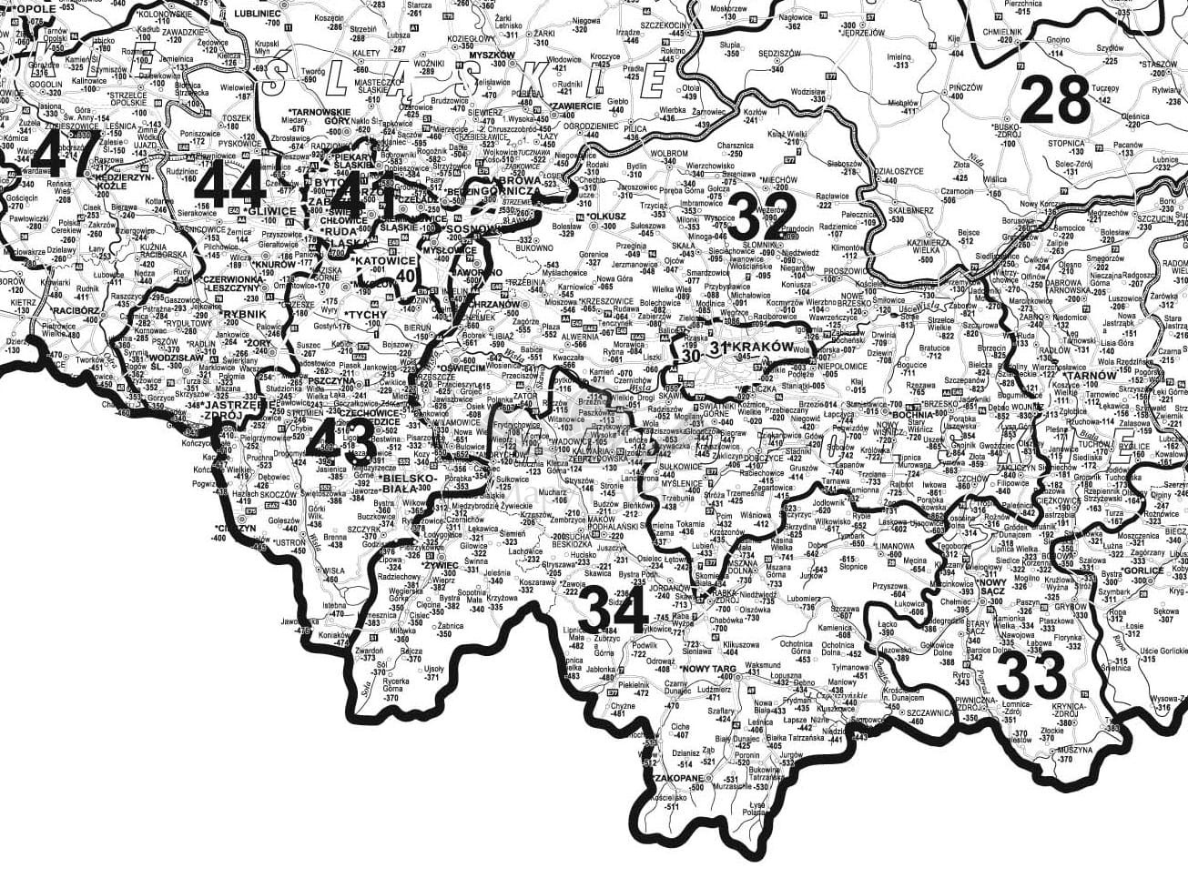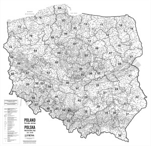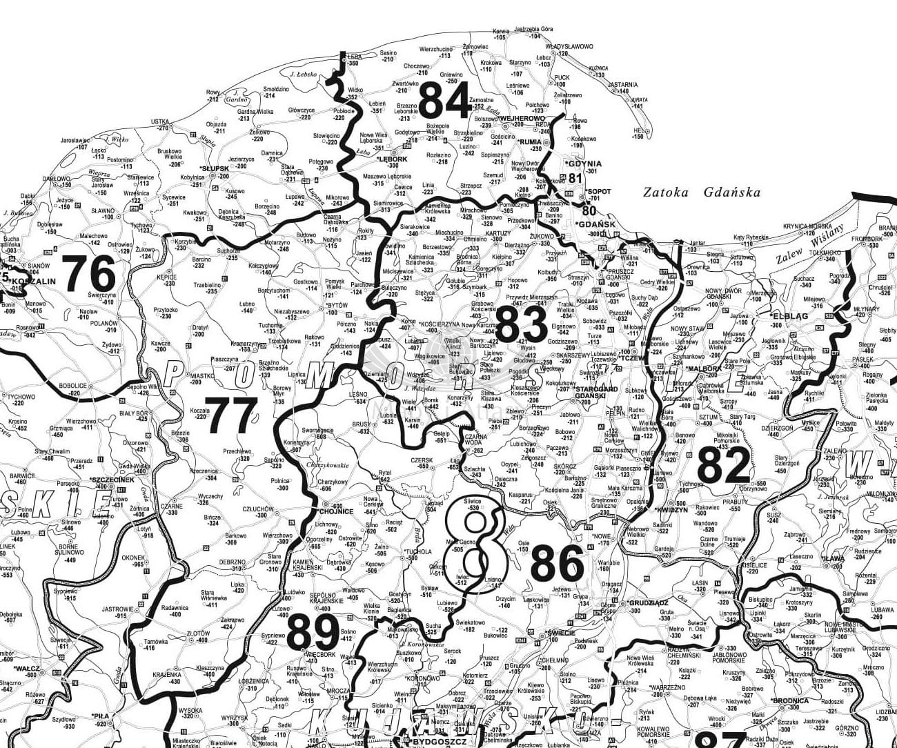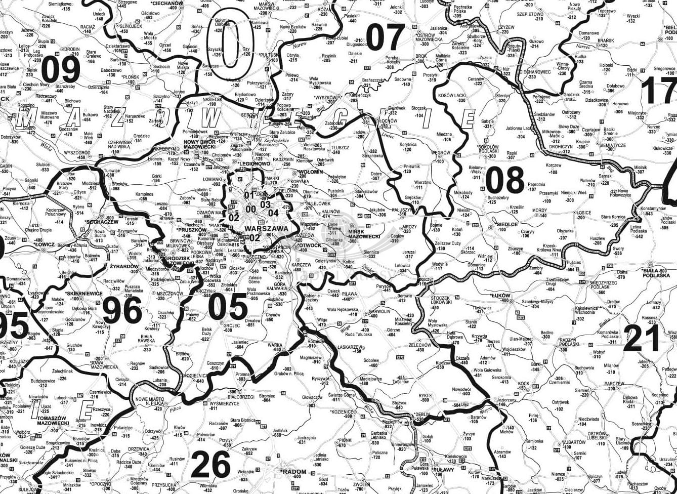 Polska 1:500 000. Mapa ścienna CZARNO-BIAŁA samochodowa z kodami pocztowymi. Wersja STRONG