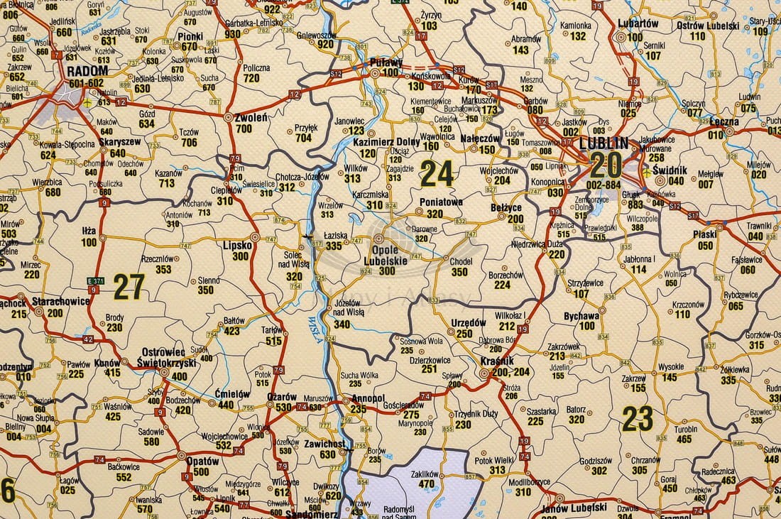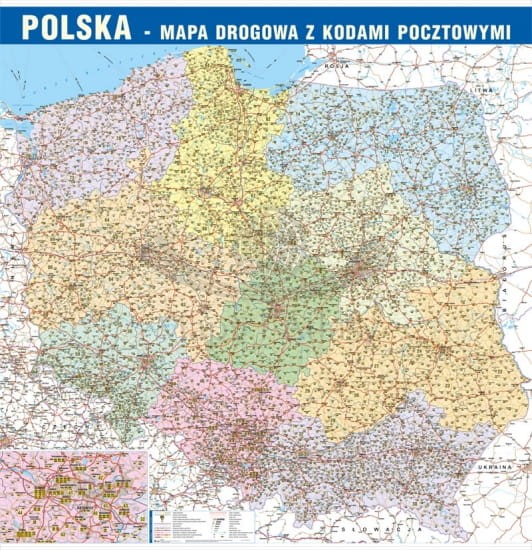 Polska 1:570 000. Mapa ścienna. Kody pocztowe.