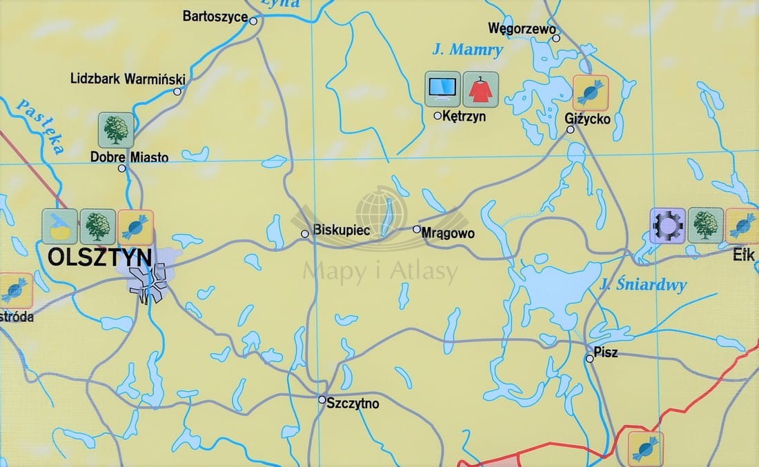 Polska - przemysł i energetyka 1:550 000. Mapa ścienna. Drewniane półwałki