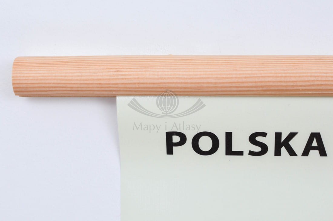 - oprawa w drewniane półwałki z zawieszeniem sznurkowym (mapa gotowa do powieszenia).
